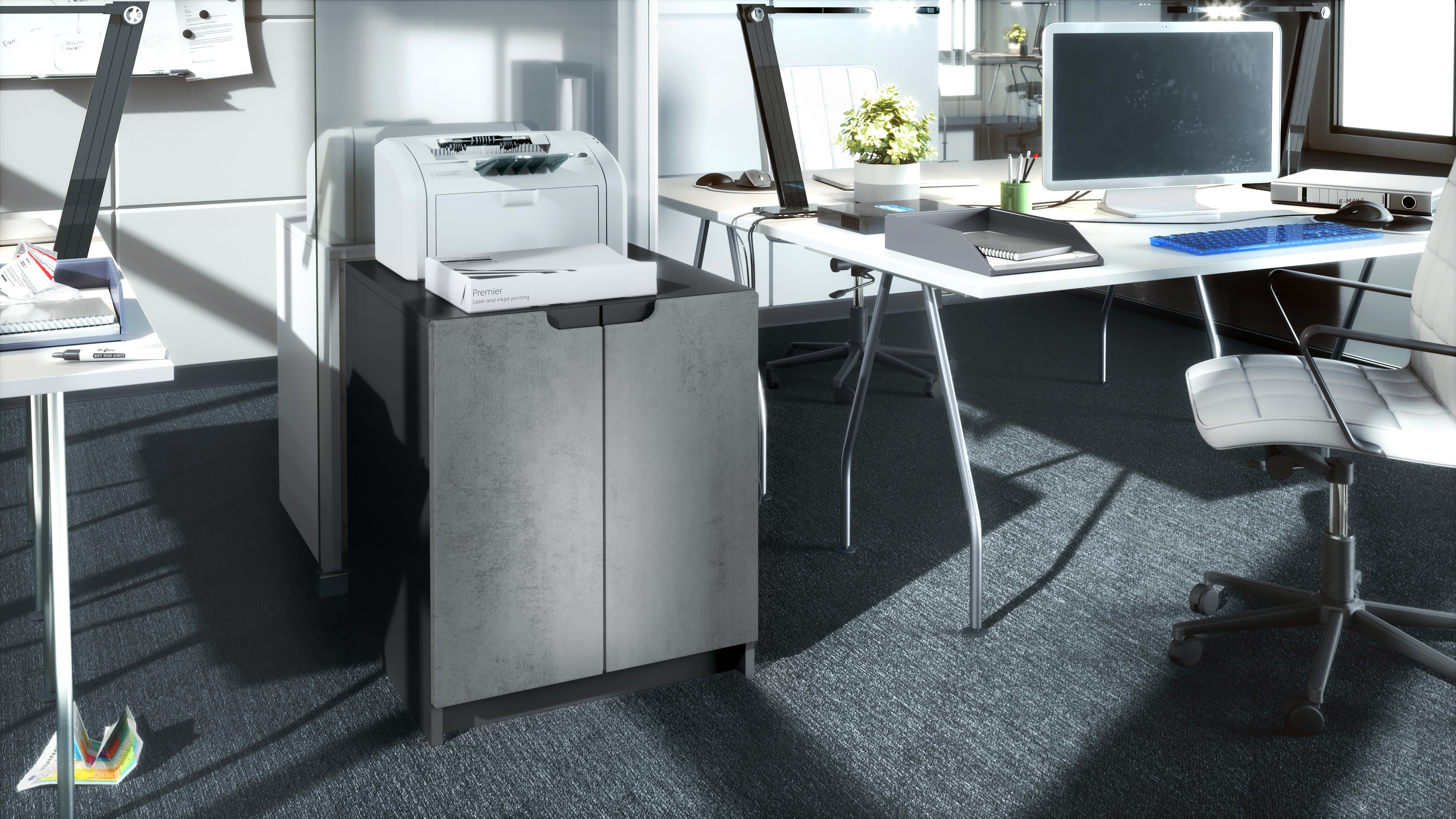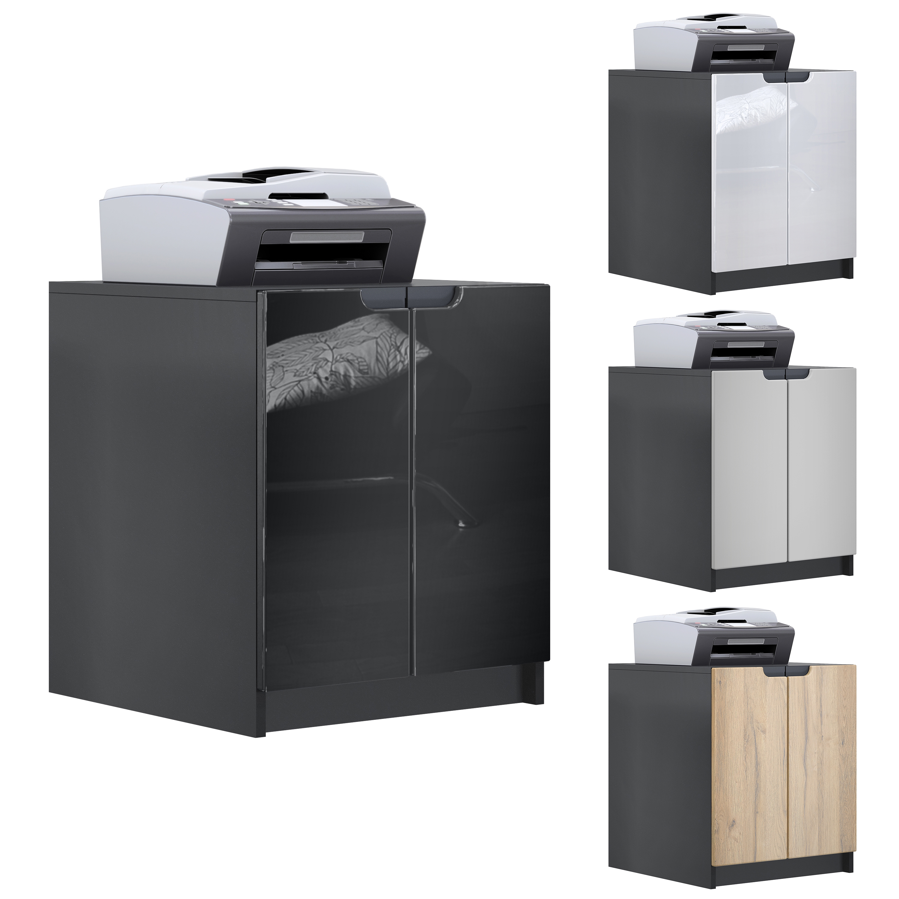 Produktinformationen "Druckerkommode Logan mit 2 Fächern und 2 Türen Schwarz matt/Beton Dunkel Optik, (51 x 60,5 x 54 cm)"