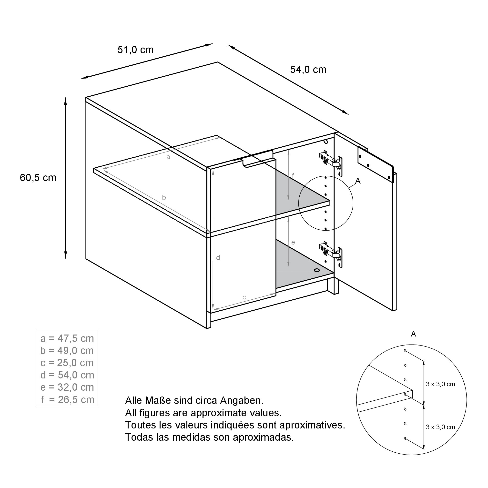 Tragfähigkeit Einlegeboden: 15 kg