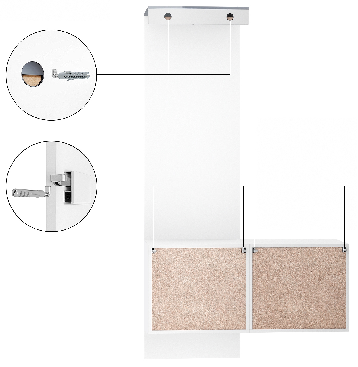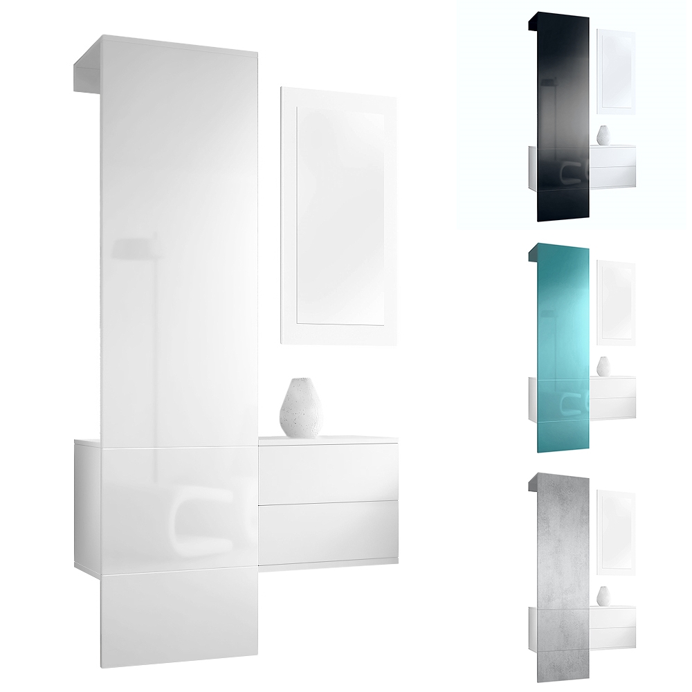 Produktinformationen "Garderobe Carlton Set 2 Weiß 3-tlg. 1 Paneel, 1 Schubkastenschrank und 1 Wandspiegel Weiß matt/Beton Oxid Optik (105 x 193 x 35 cm)"
