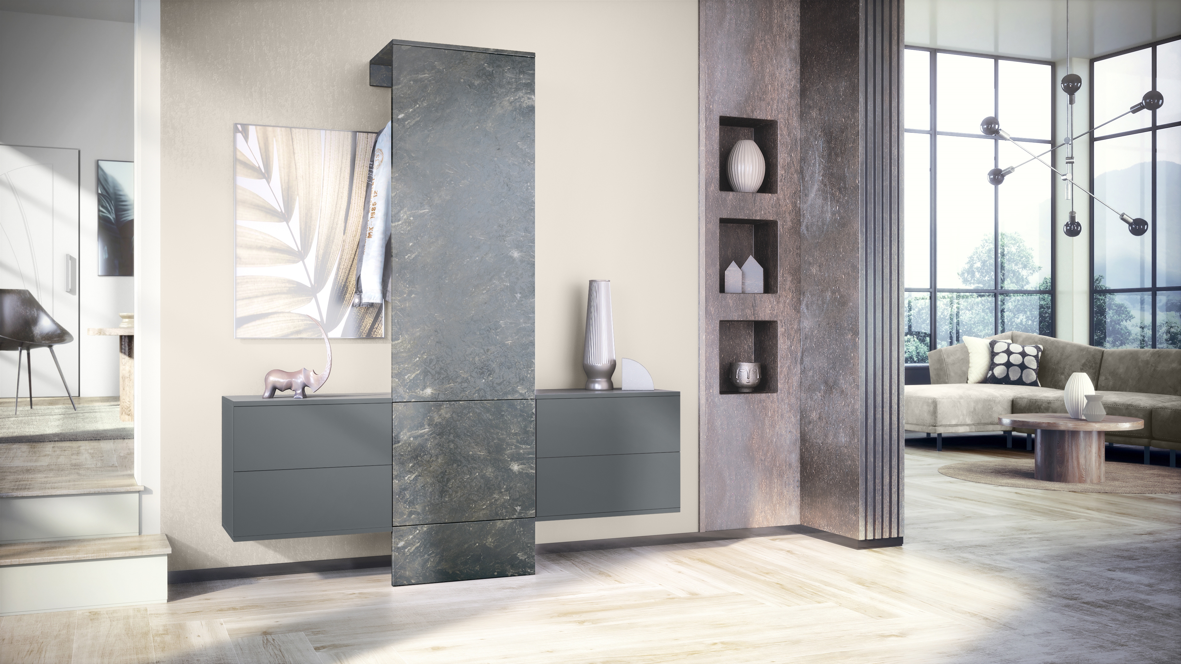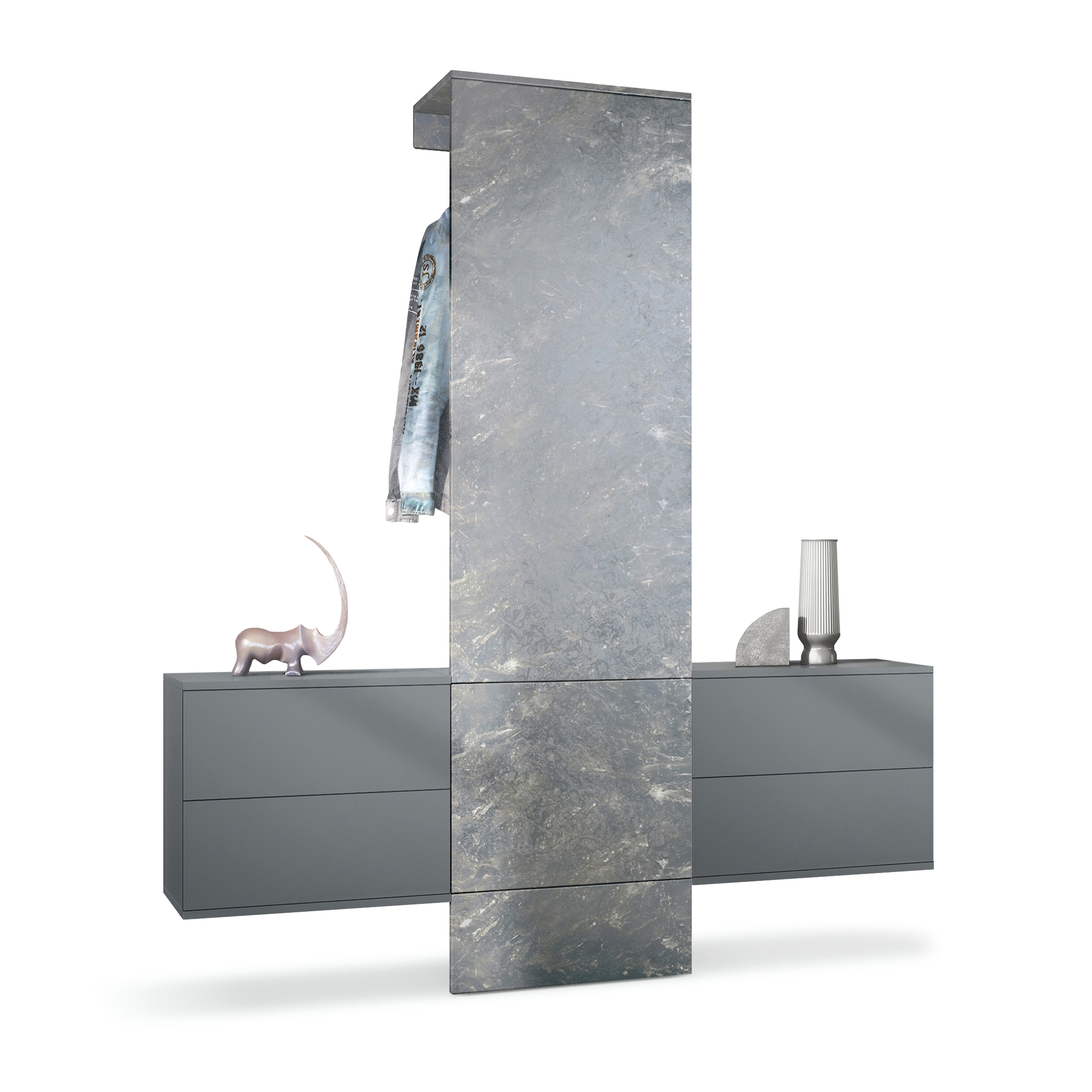 Produktinformationen "Garderobe Carlton Set 3 Anthrazit 4-tlg. 1 Paneel und 2 Schubkastenschränke Anthrazit matt/Marmor Graphit (157 x 193 x 35 cm)"