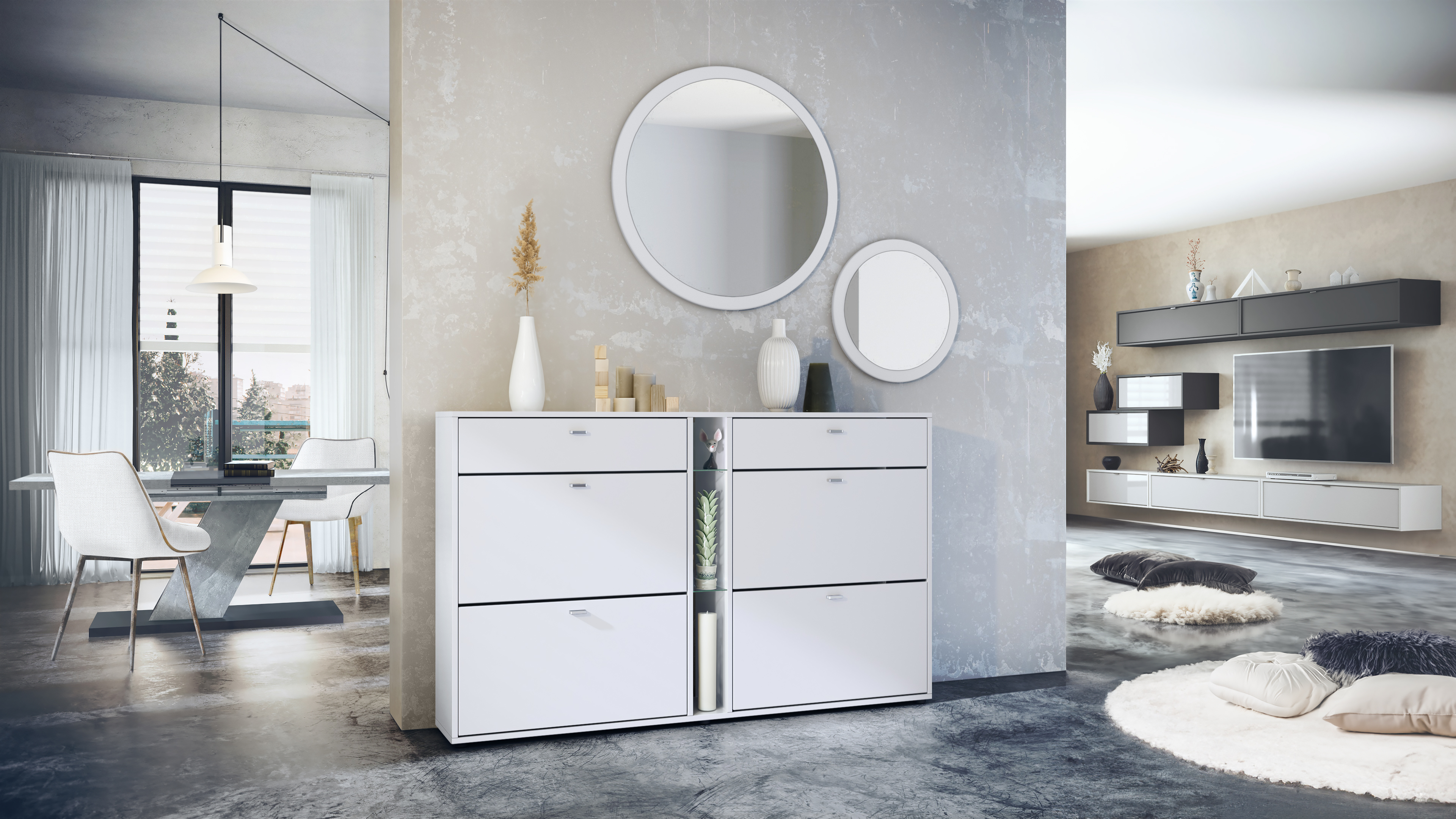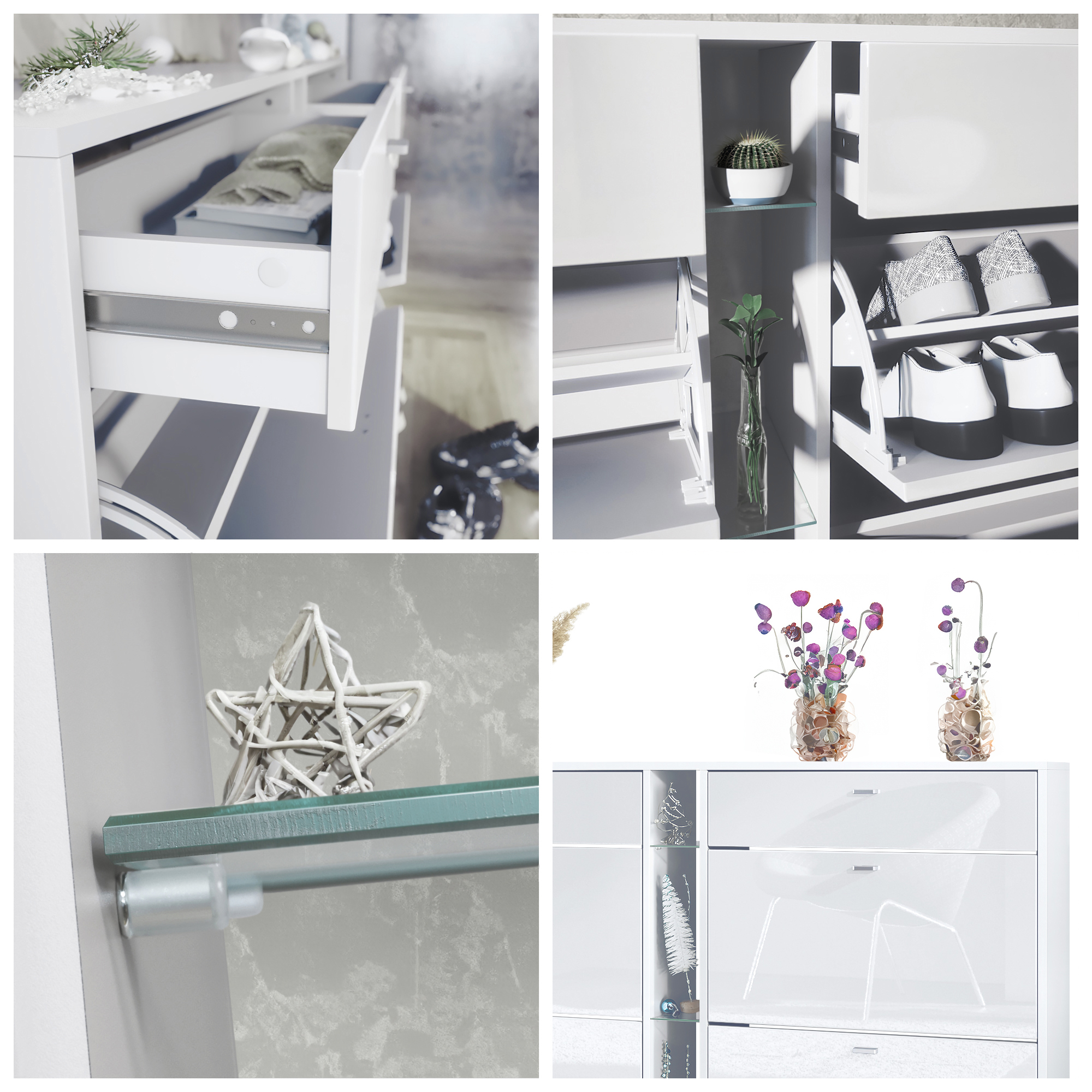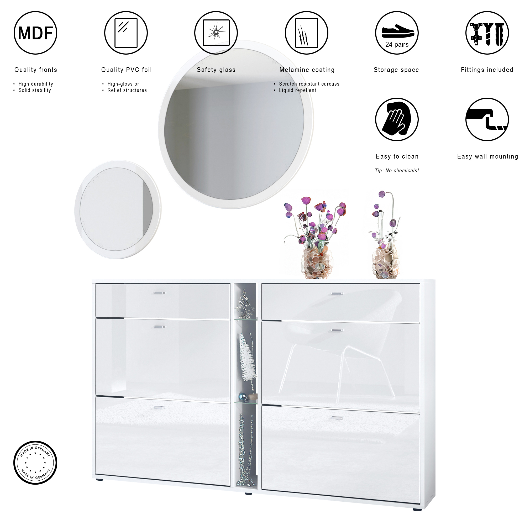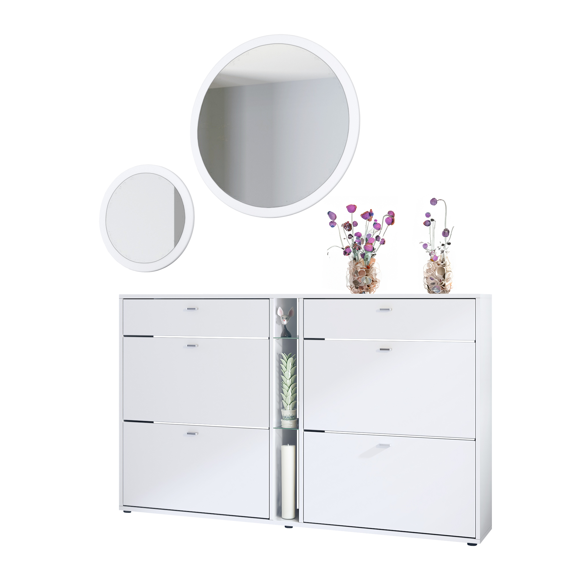 Produktinformationen "Garderobenset 3-tlg. Florence Weiß mit Schuhschrank und 2 Wandspiegel Weiß matt/Weiß matt"