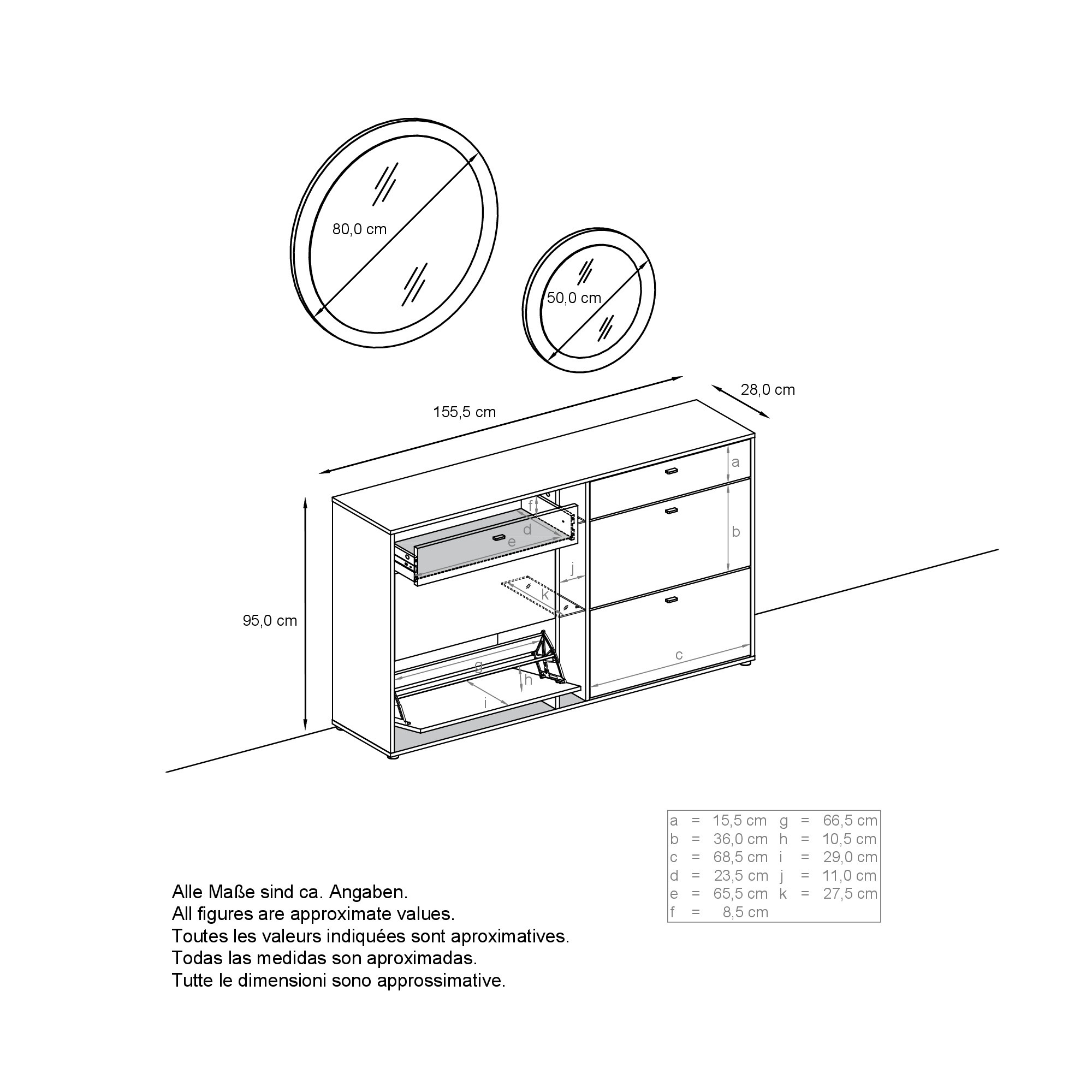Maße des Schuhschranks (BxHxT): 155,5 x 95 x 28 cm