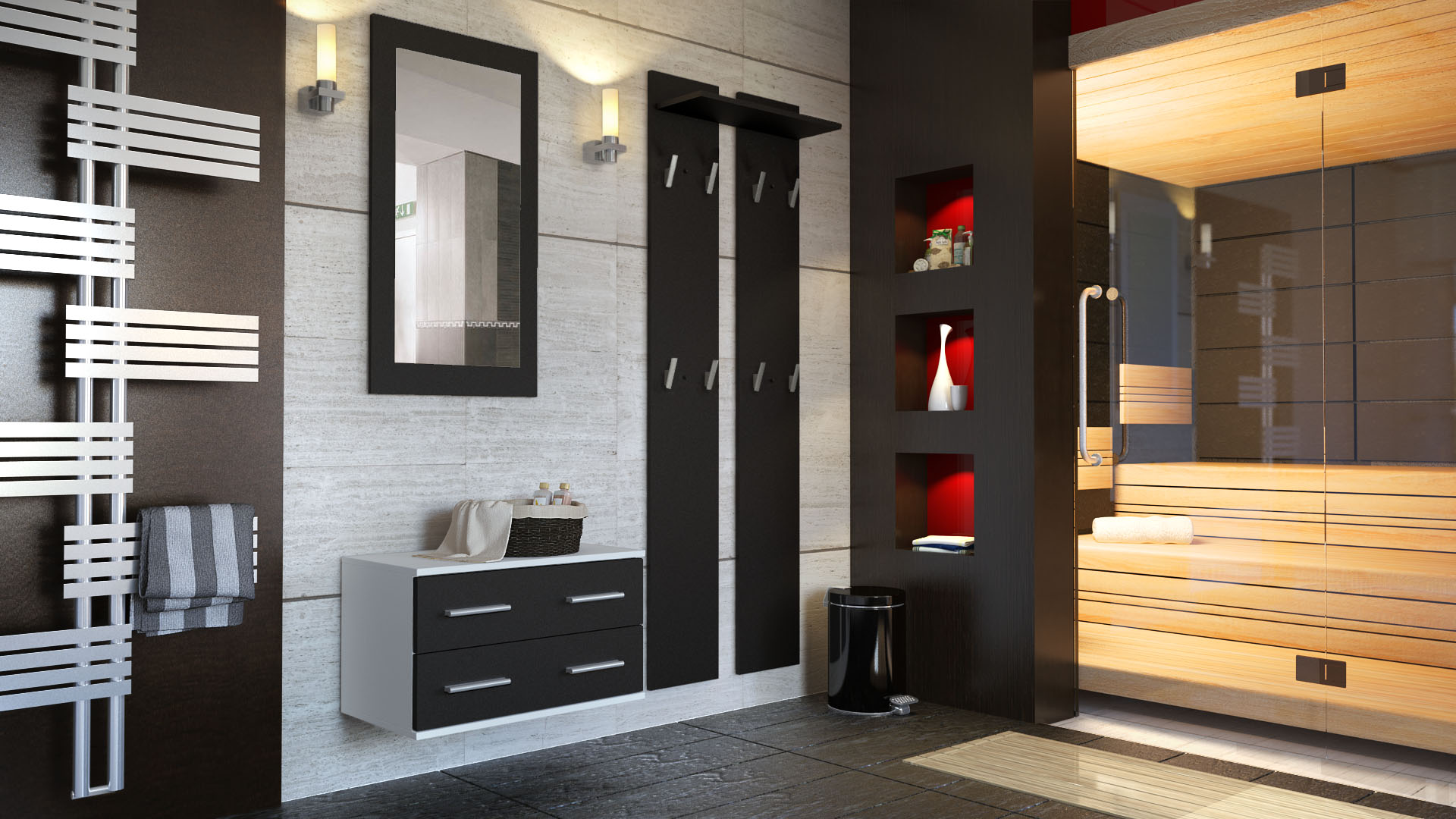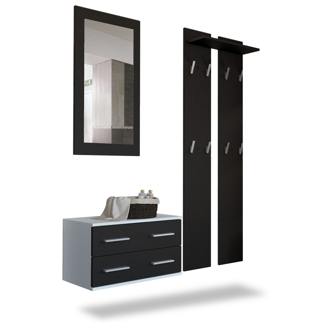 Produktinformationen "Garderobenset Kioto 1 Wandspiegel und 2 Garderobenpaneele Weiß matt/Schwarz matt (170 x 35 x 200 cm)"