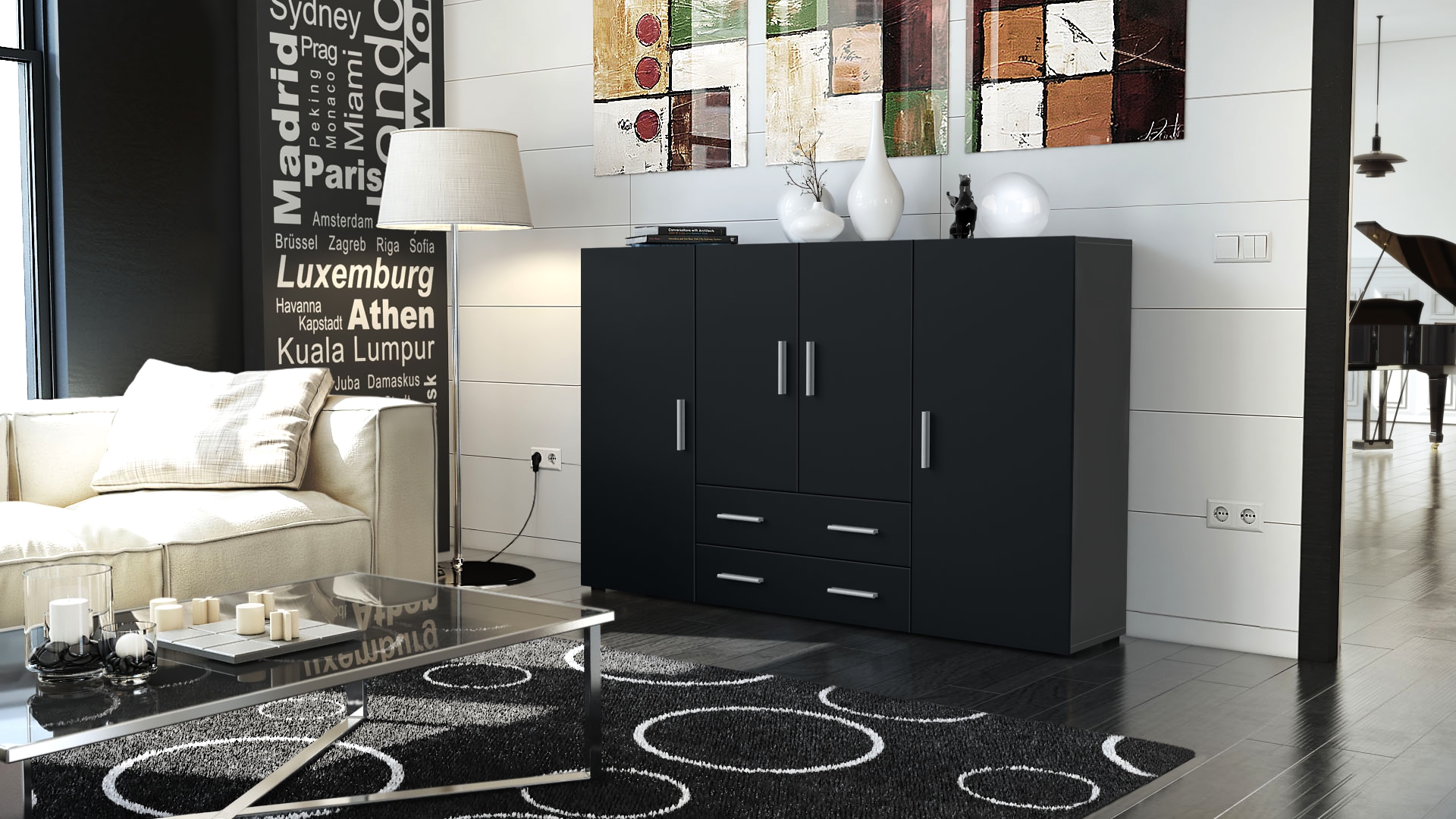 Das Highboard Nora in der Farbvariante Schwarz matt