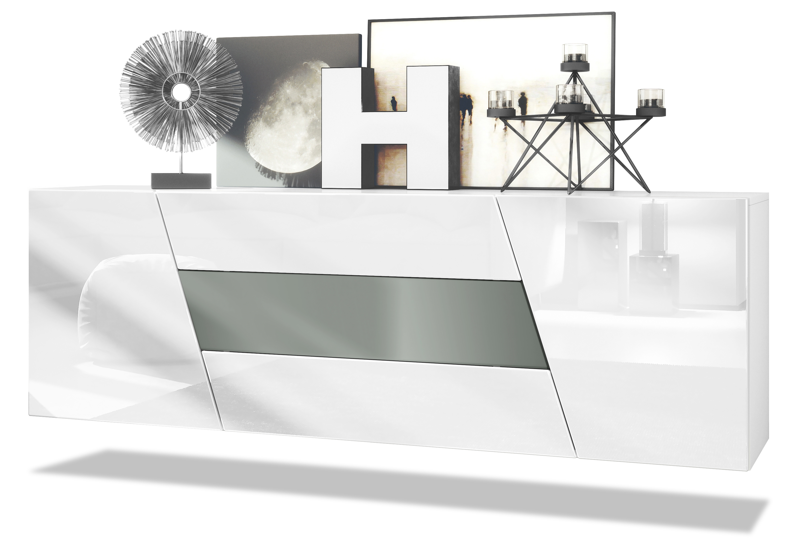 Produktinformationen "Houston Sideboard hängend mit 2 Türen und 3 Schubladen Weiß matt/Weiß Hochglanz/Graphit Seidenmatt (178 x 57,5 x 38,5 cm)"