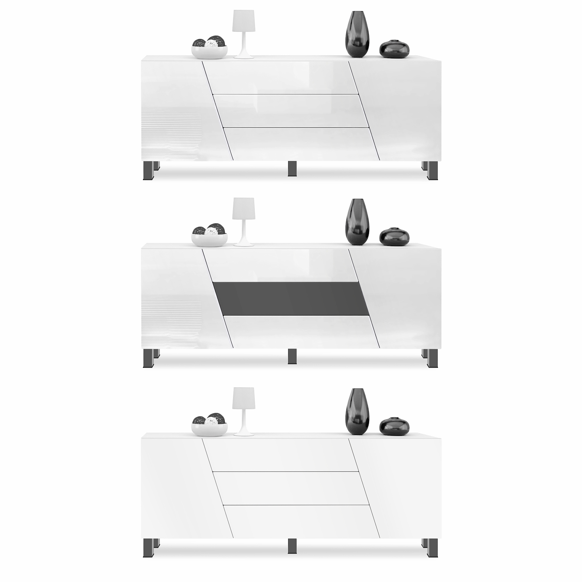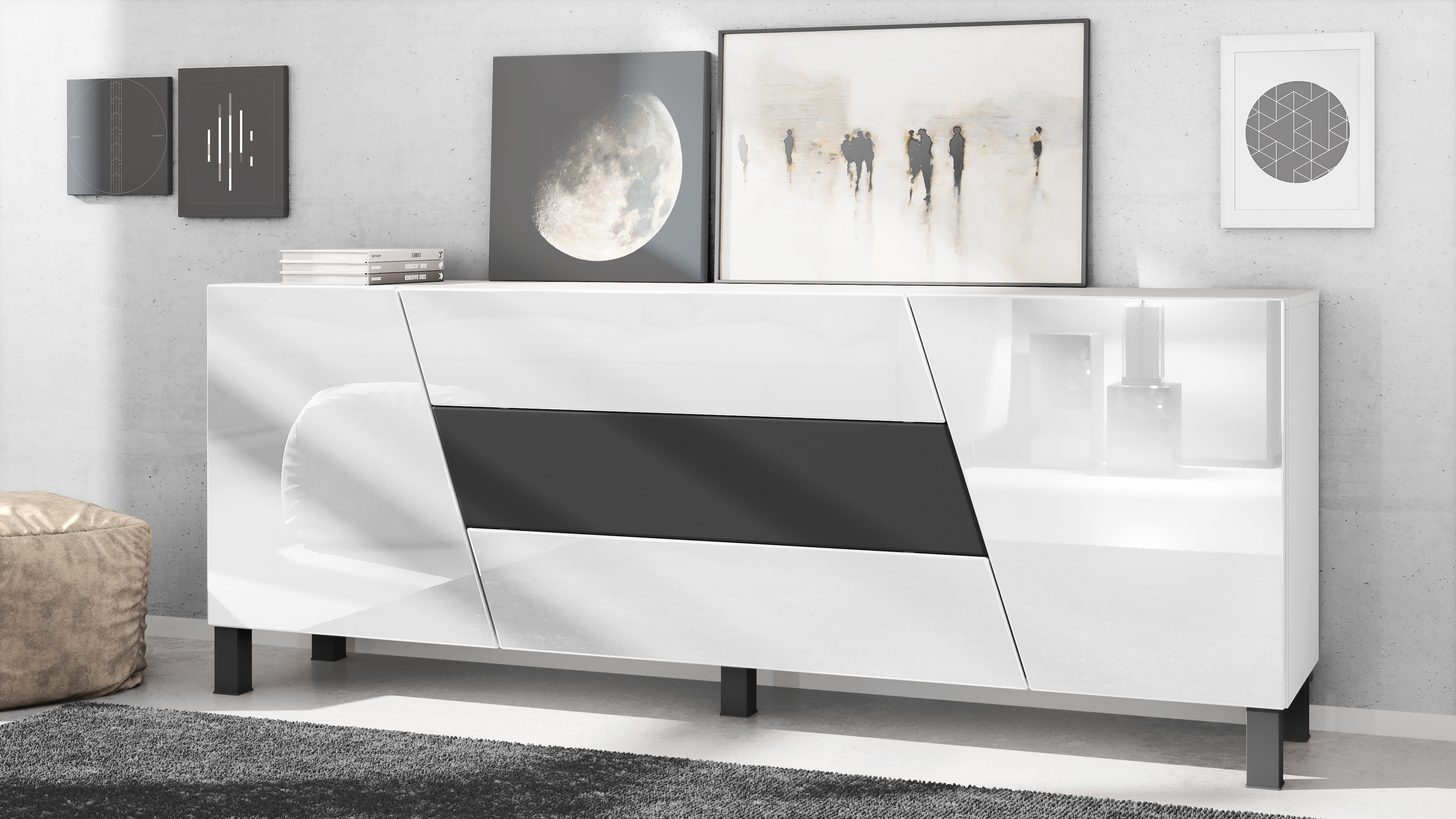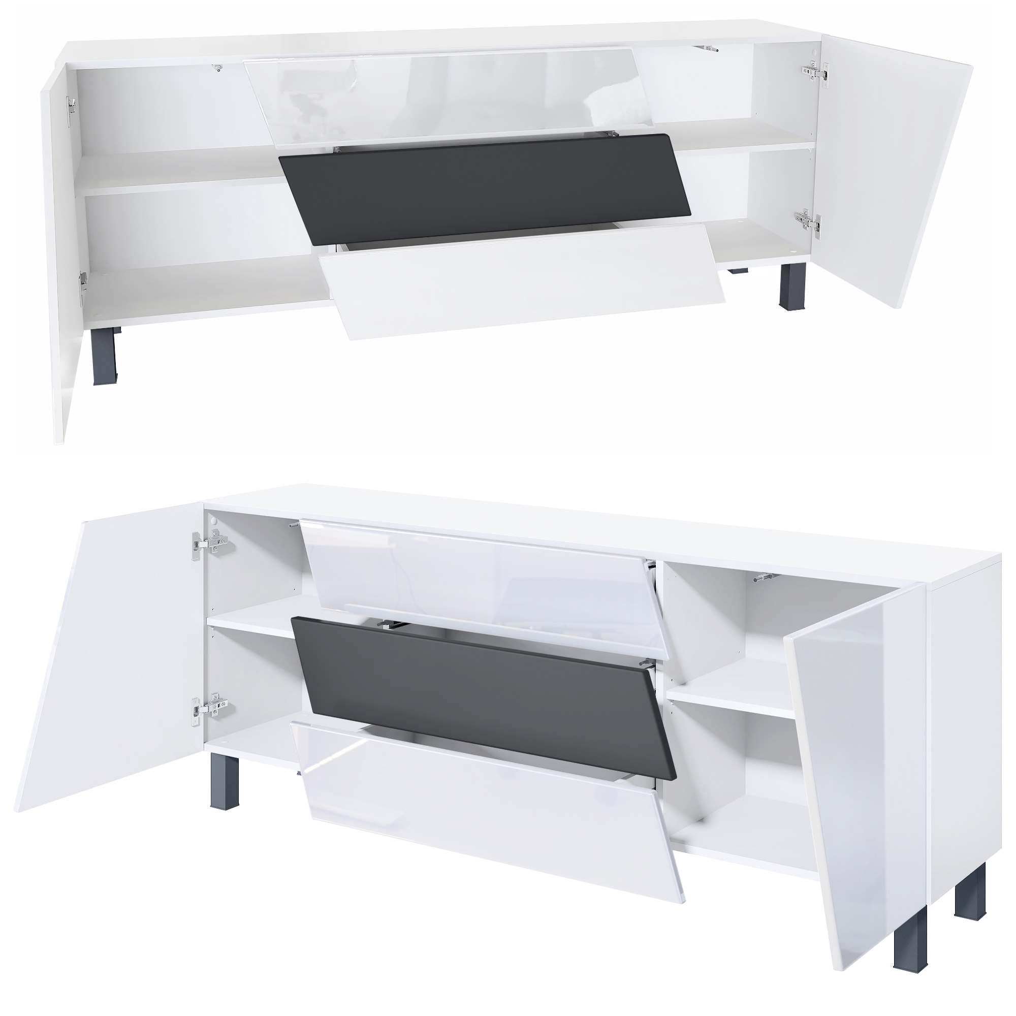 Produktinformationen "Houston Sideboard mit 2 Türen und 3 Schubladen Weiß matt/Weiß Hochglanz/Schwarz matt (178 x 57,5 x 38,5 cm)"