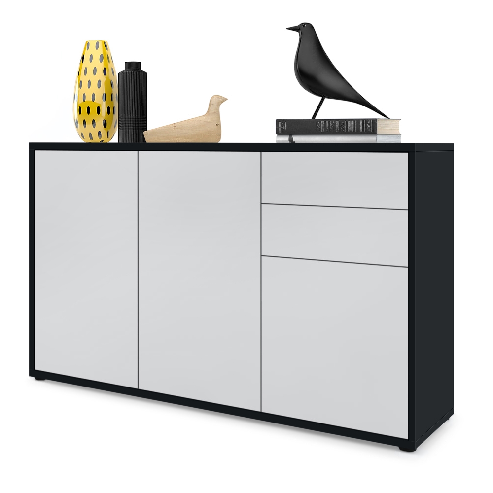 Produktinformationen "Kommode Ben V3 mit 3 Türen und 2 Schubladen Schwarz matt/Schwarz matt (117 x 74 x 36 cm)"