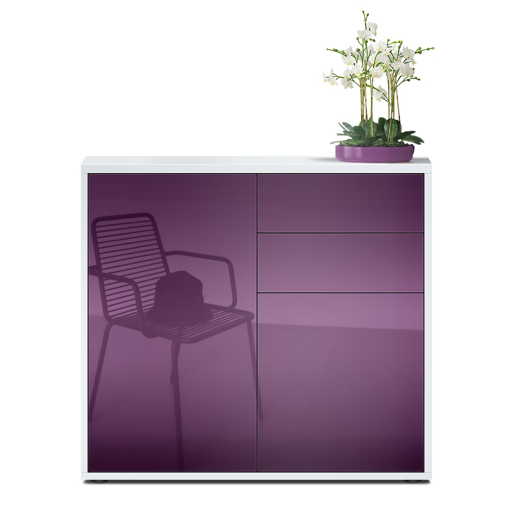 Produktinformationen "Kommode Ben mit 2 Türen und 2 Schubladen Weiß matt/Brombeer Hochglanz(79 x 74 x 36 cm)"