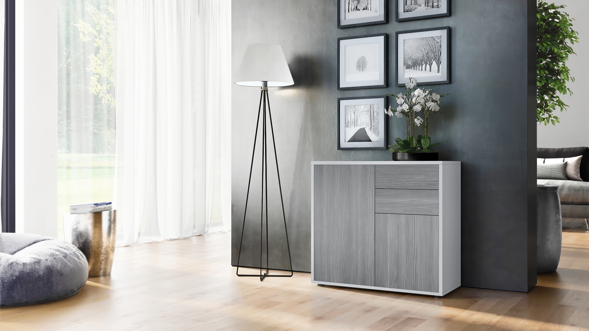 Produktinformationen "Kommode Ben mit 2 Türen und 2 Schubladen Weiß matt/Avola-Anthrazit (79 x 74 x 36 cm)"