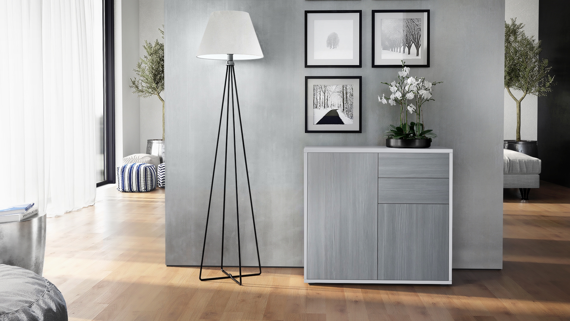 Durch das schlichte, moderne Design lässt sich die Kommode mit vielen verschiedenen Einrichtungsstilen kombinieren und sowohl als Wohnzimmerschrank, Kommode im Schlafzimmer oder als TV-Sideboard einsetzen. Für eine besondere Eleganz sorgen die Fronten der Türen- und Schubladenkommode, erhältlich in vielen verschiedenen Farbvarianten, die Ihnen eine Vielzahl an Kombinationsmöglichkeiten bieten. Durch die Oberflächenbeschichtung erhalten Sie ein besonders pflegeleichtes Produkt. Für die Reinigung können Sie auf Chemie verzichten - es reicht ein leicht angefeuchtetes Tuch, um die wasserfeste Oberfläche angemessen zu reinigen.