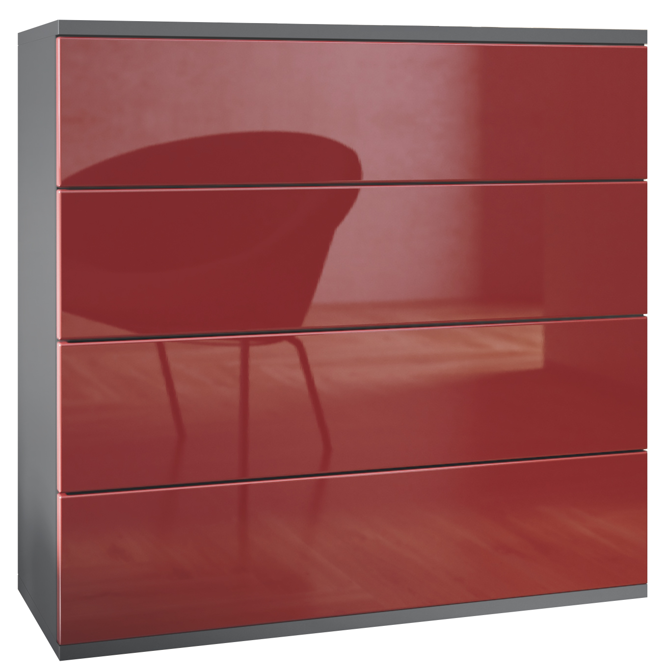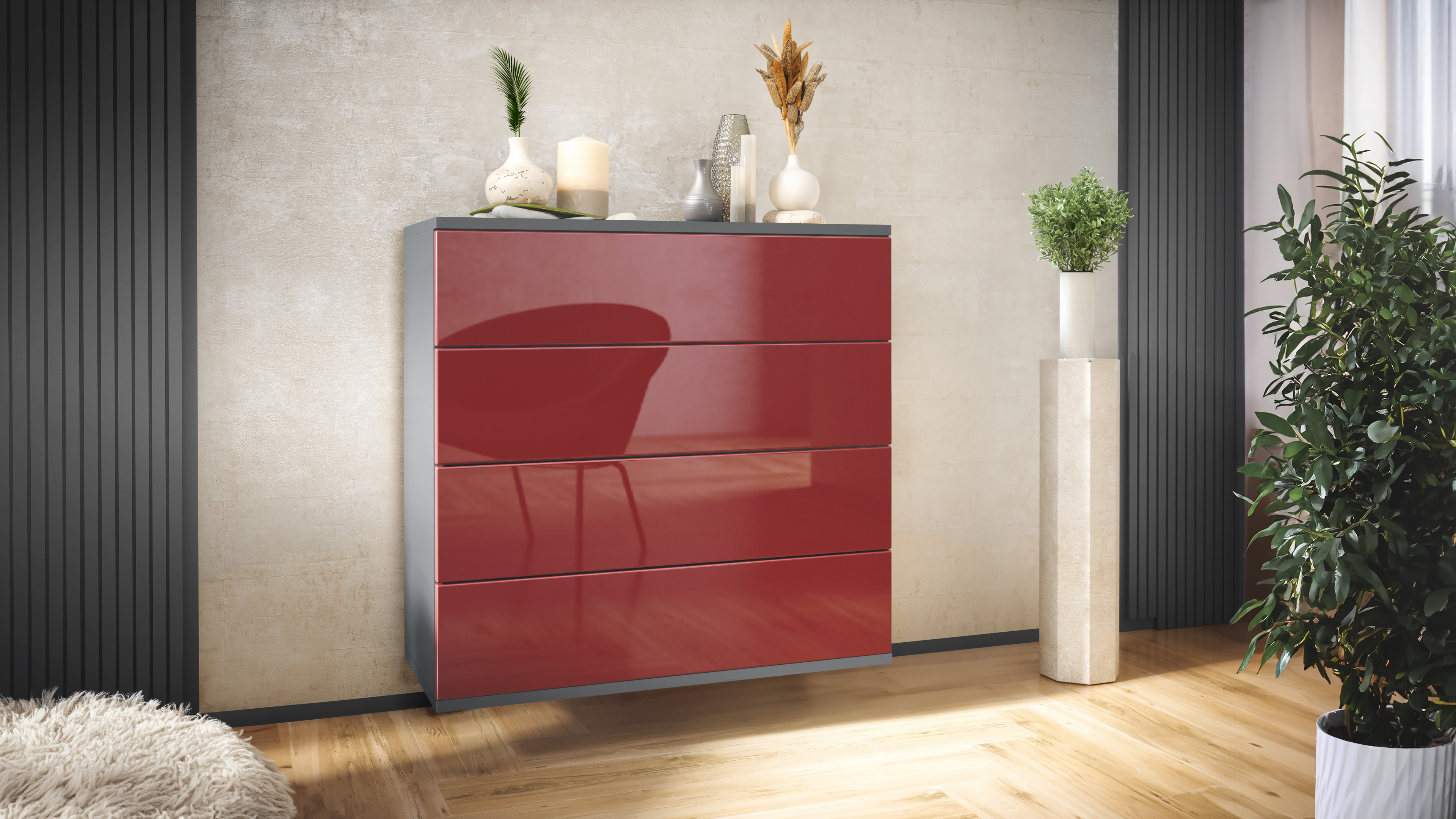 Produktinformationen "Kommode Pavos V3 hängend mit 4 Schubladen Anthrazit matt/Bordeaux Hochglanz (76 x 76 x 35 cm)"