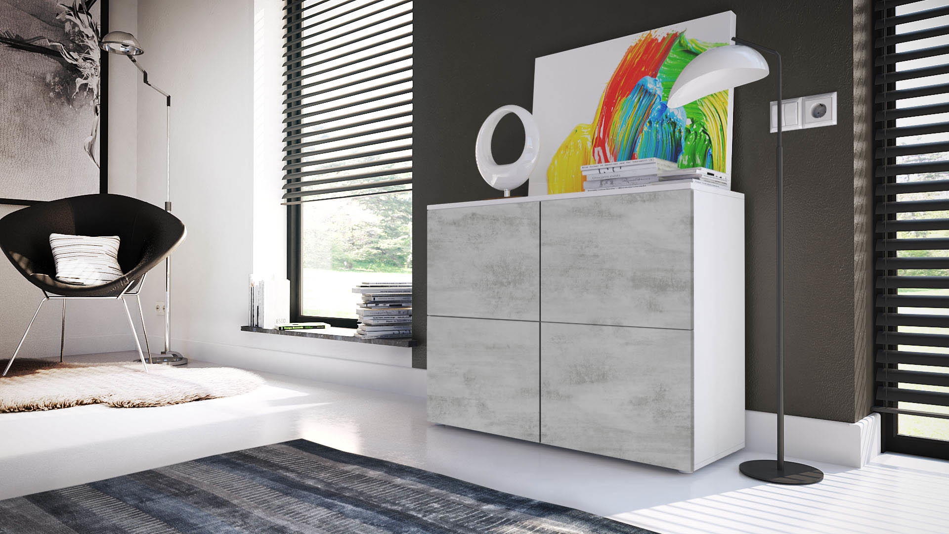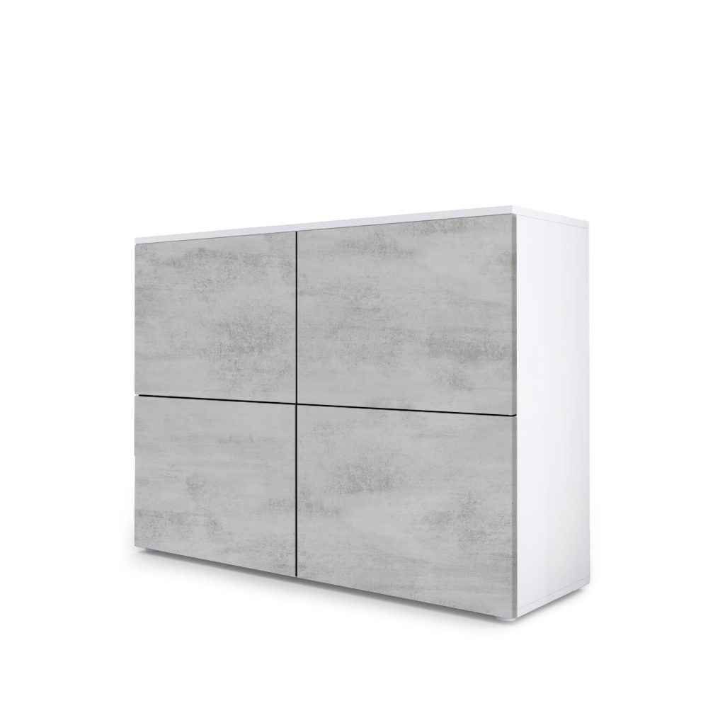 Produktinformationen "Kommode Rova mit 4 Türen Weiß matt/Beton Oxid Optik (92 x 72 x 35 cm)"