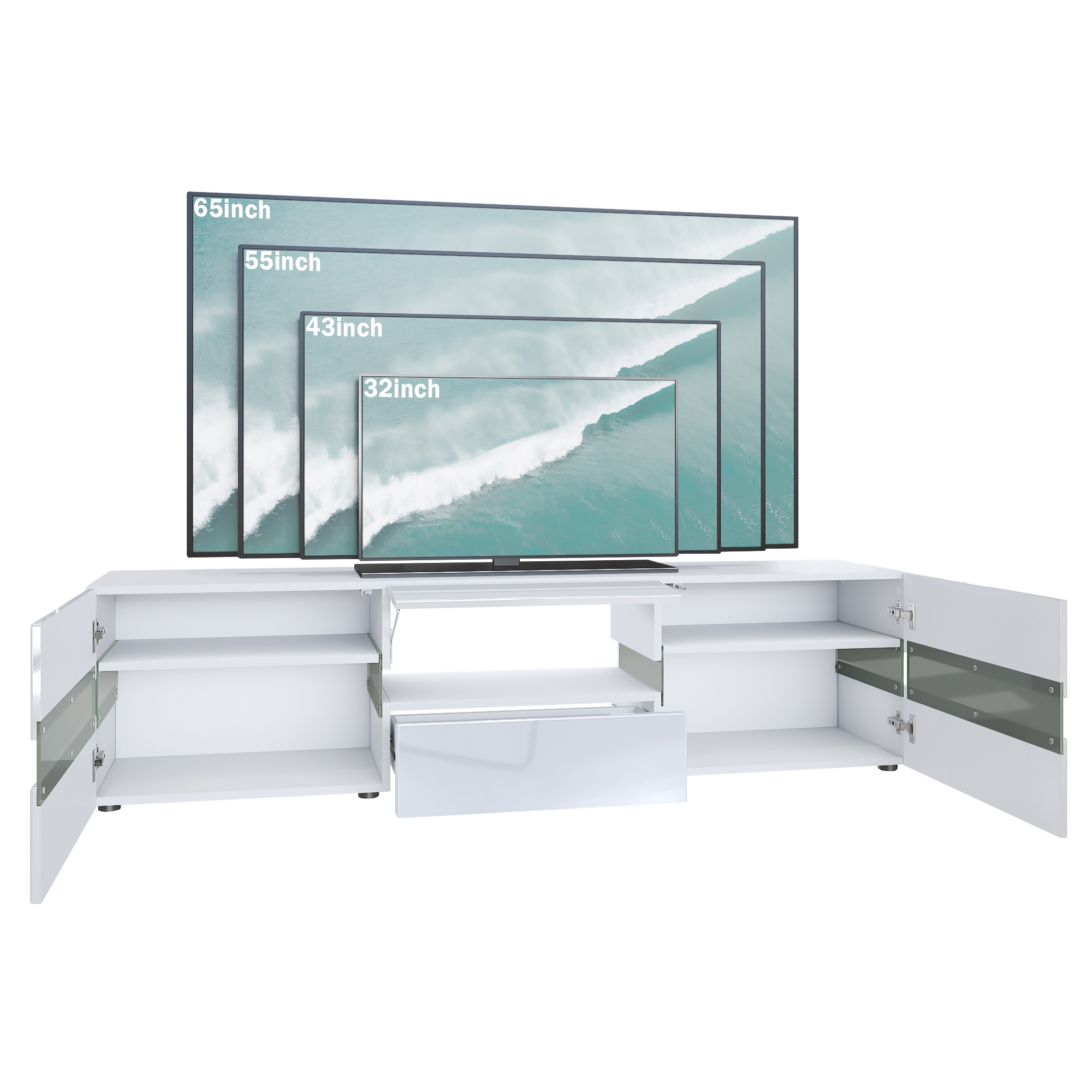 Produktinformationen "Lowboard Flow mit 2 Türen, 1 Schublade und 1 Klappe Weiß Hochglanz (177 x 45 x 39 cm)"