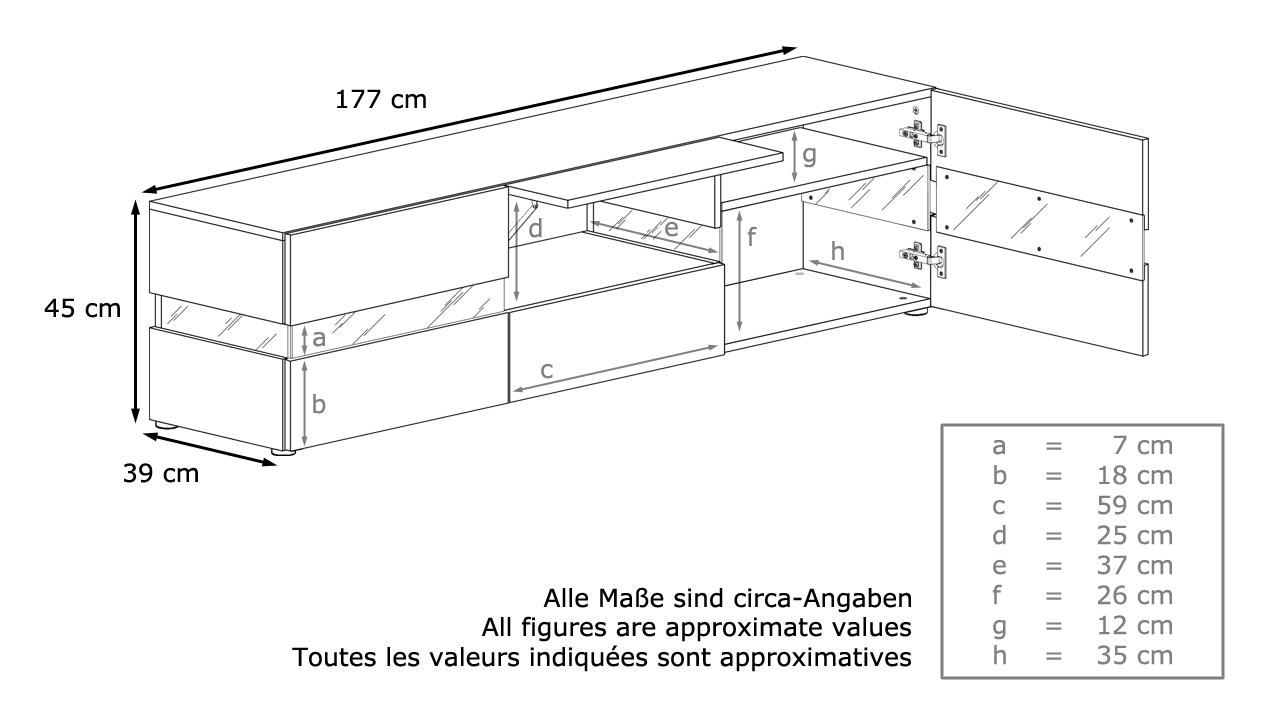 Lowboard (BxHxT): 177 x 45 x 39 cm
