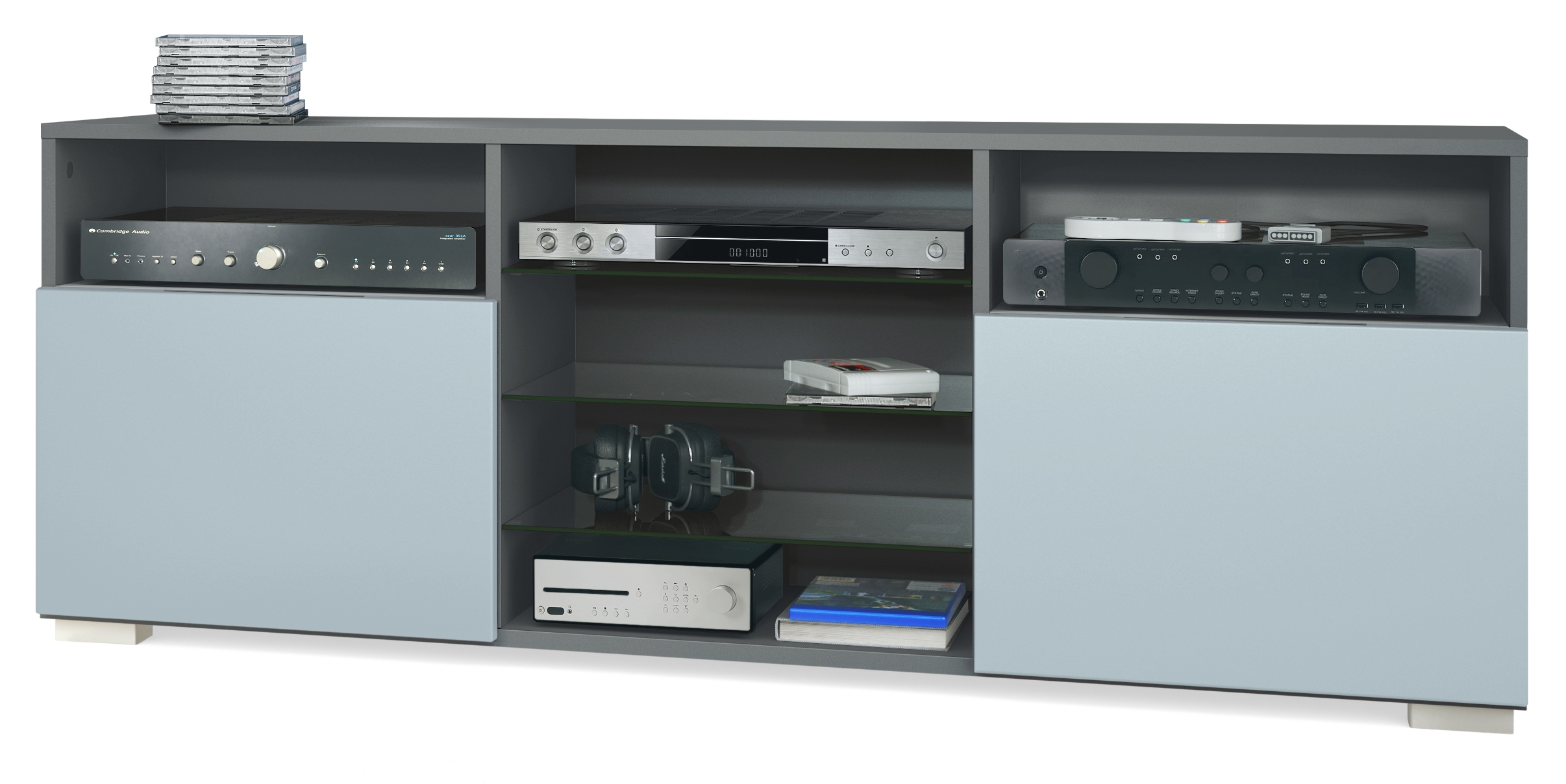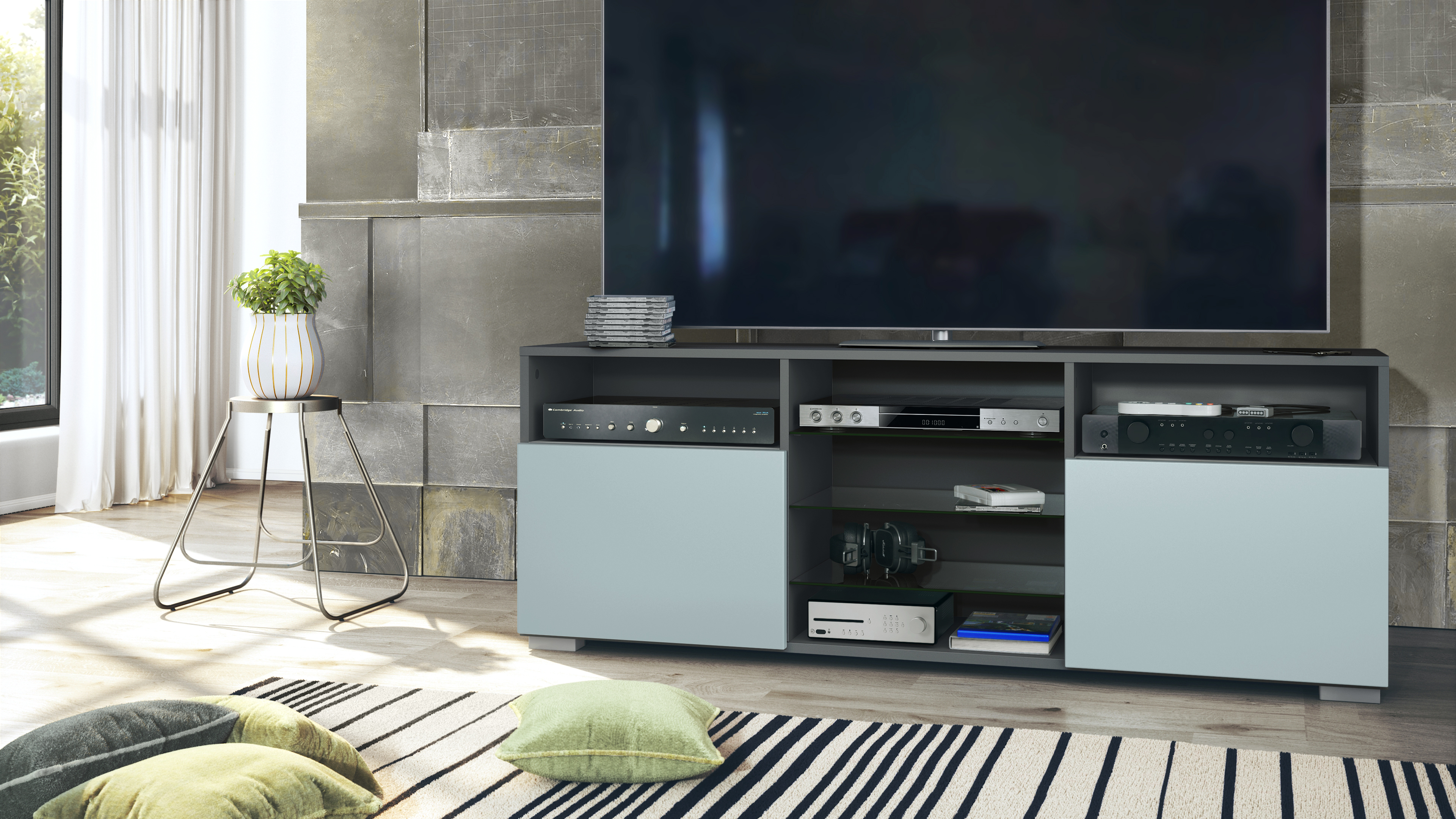 Produktinformationen "Lowboard Granada mit 2 Türen und 6 offenen Fächern Anthrazit matt, Denim matt"