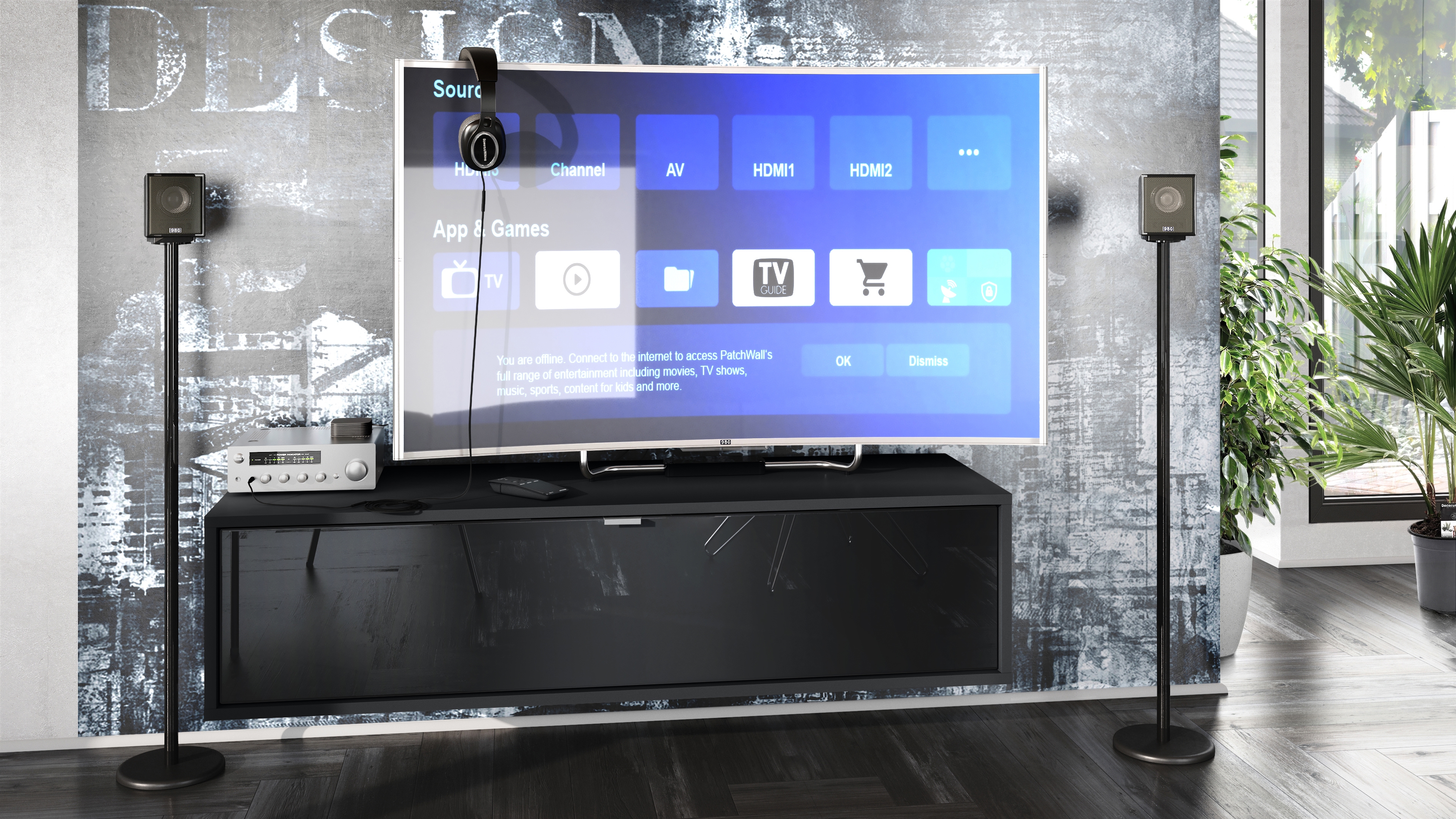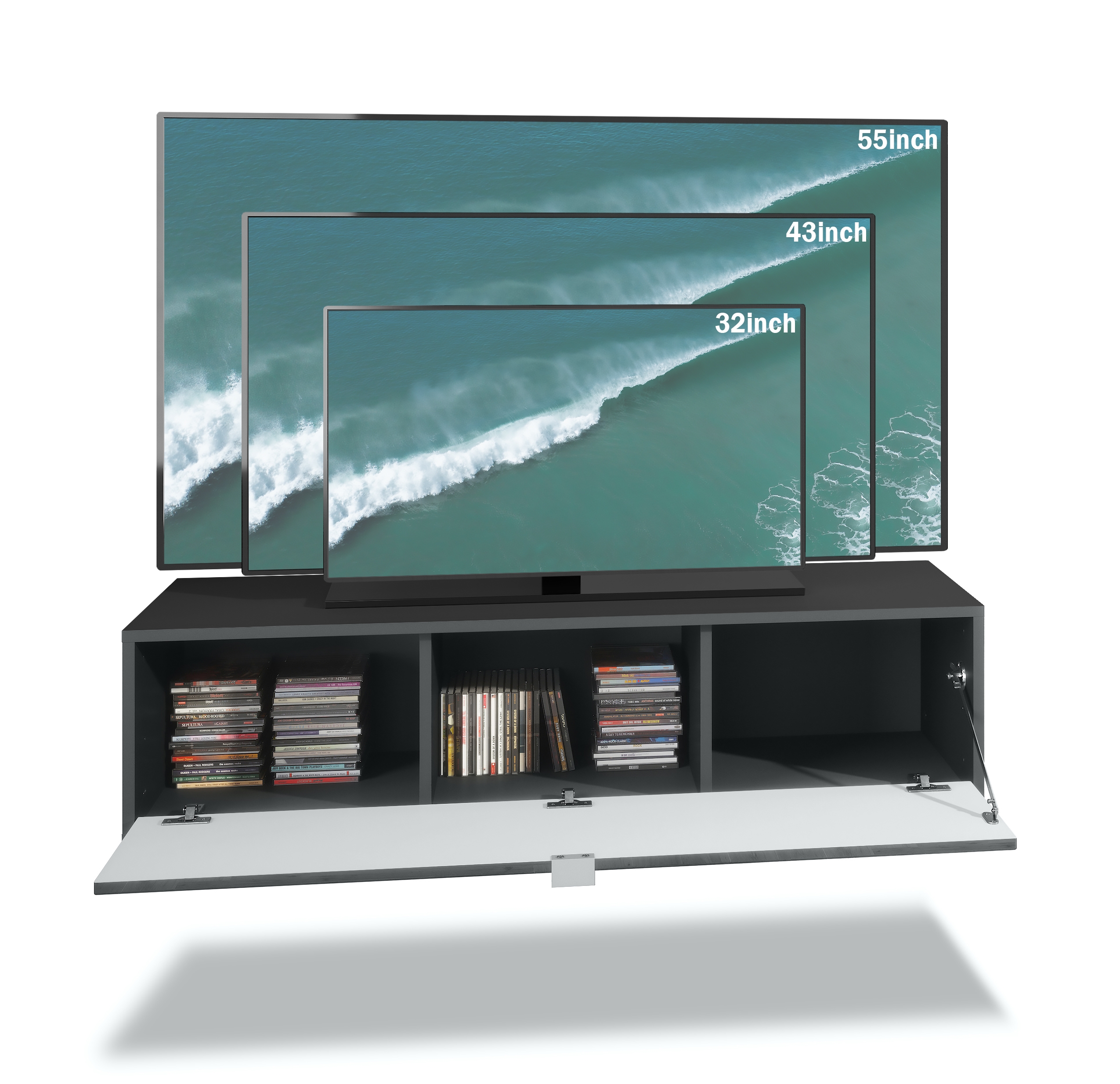 Der Korpus des TV Boards hat die Farbe Schwarz matt. Um dem Möbelstück einen futuristischen Stil zu verleihen, wird es hängend an der Wand befestigt. So kann man es nahezu überall im Haus anbringen. Dies ist gerade dann praktisch, wenn auf dem Boden nicht genügend Platz für stehende Möbel verfügbar ist.
