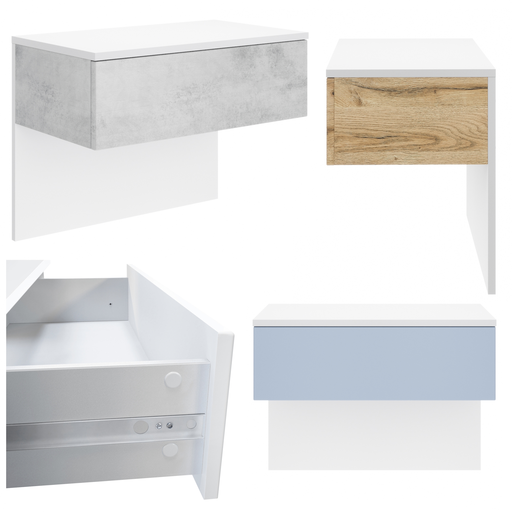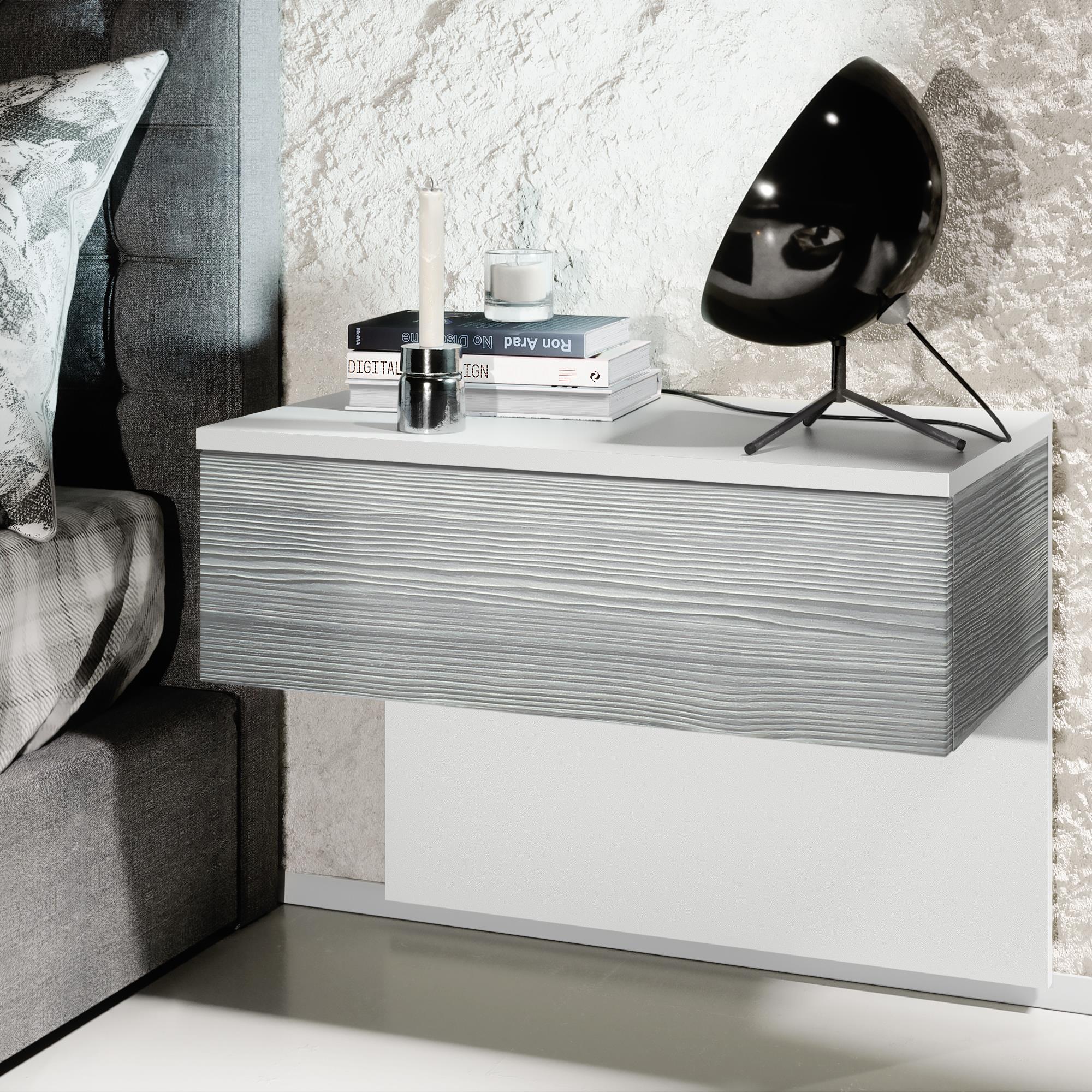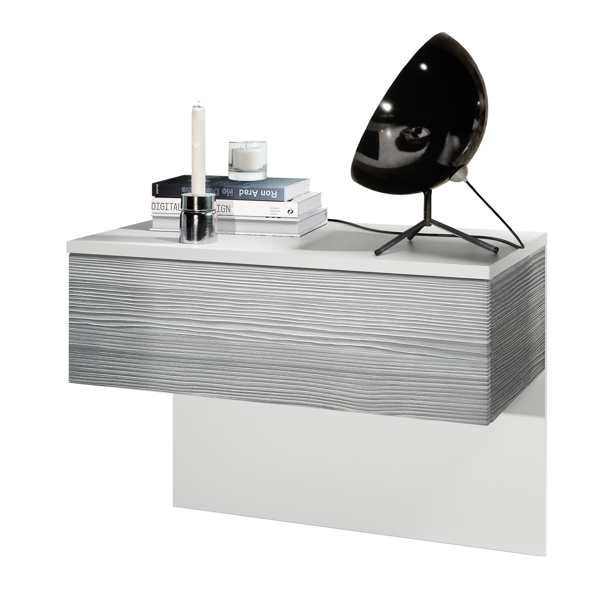 Produktinformationen "Nachttisch Sleep mit Schublade zur Wandmontage Weiß matt/Avola-Anthrazit (60 x 46 x 35 cm)"