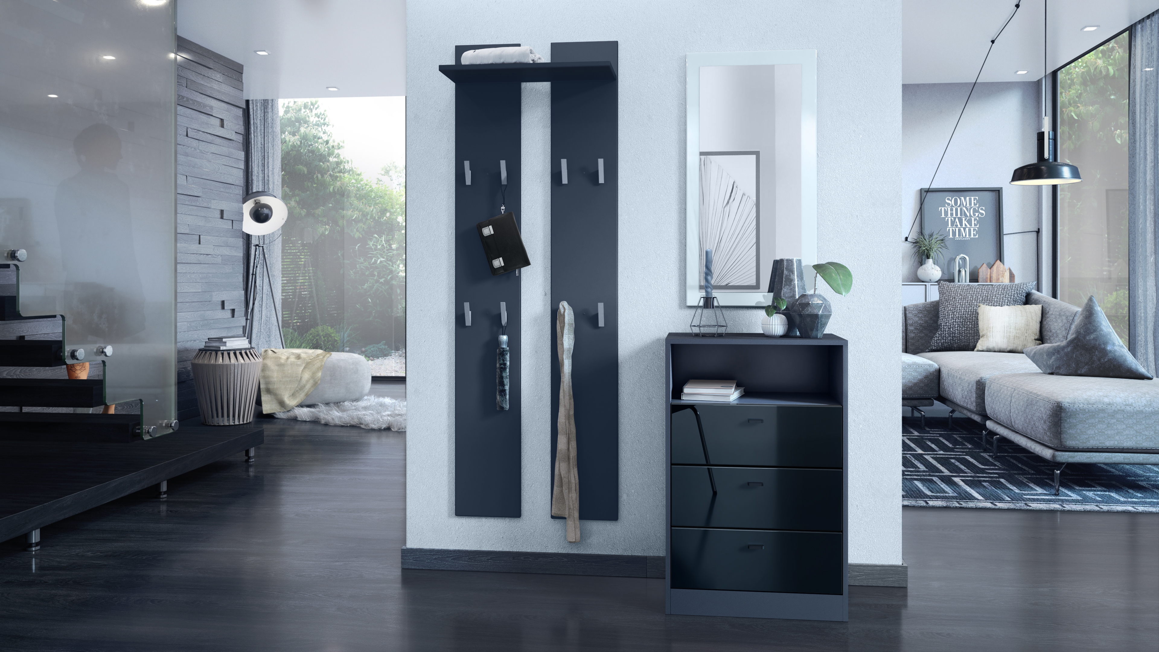 Produktinformationen "Kommode Pino V2 mit 3 Schubladen & 1 offenem Fach Anthrazit matt/Schwarz Hochglanz (56 x 86,5 x 36 cm)"