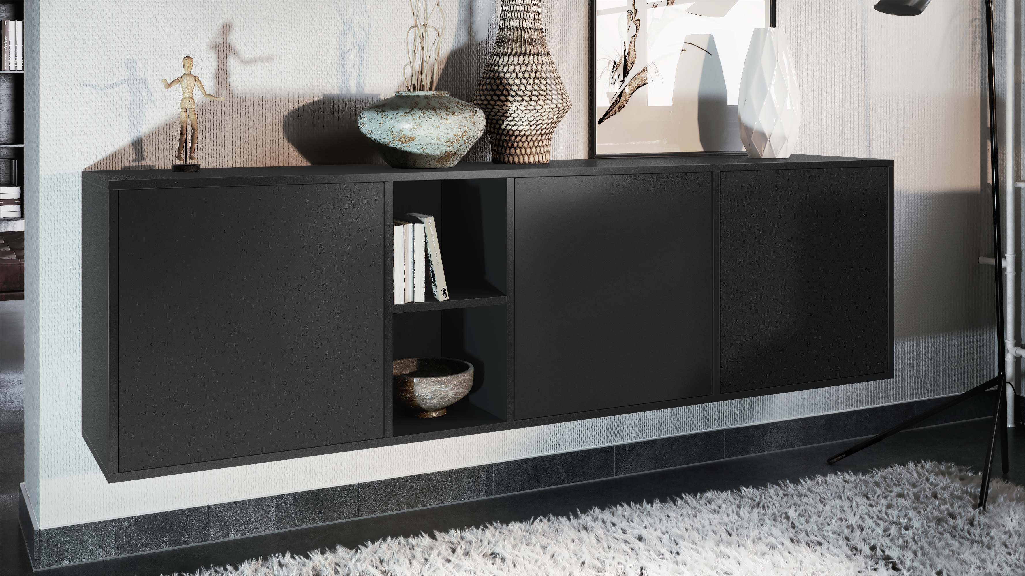 Produktinformationen "Sideboard Cuba mit 3 Türen und 2 offene Fächer Schwarz matt (182 x 53 x 35 cm)"