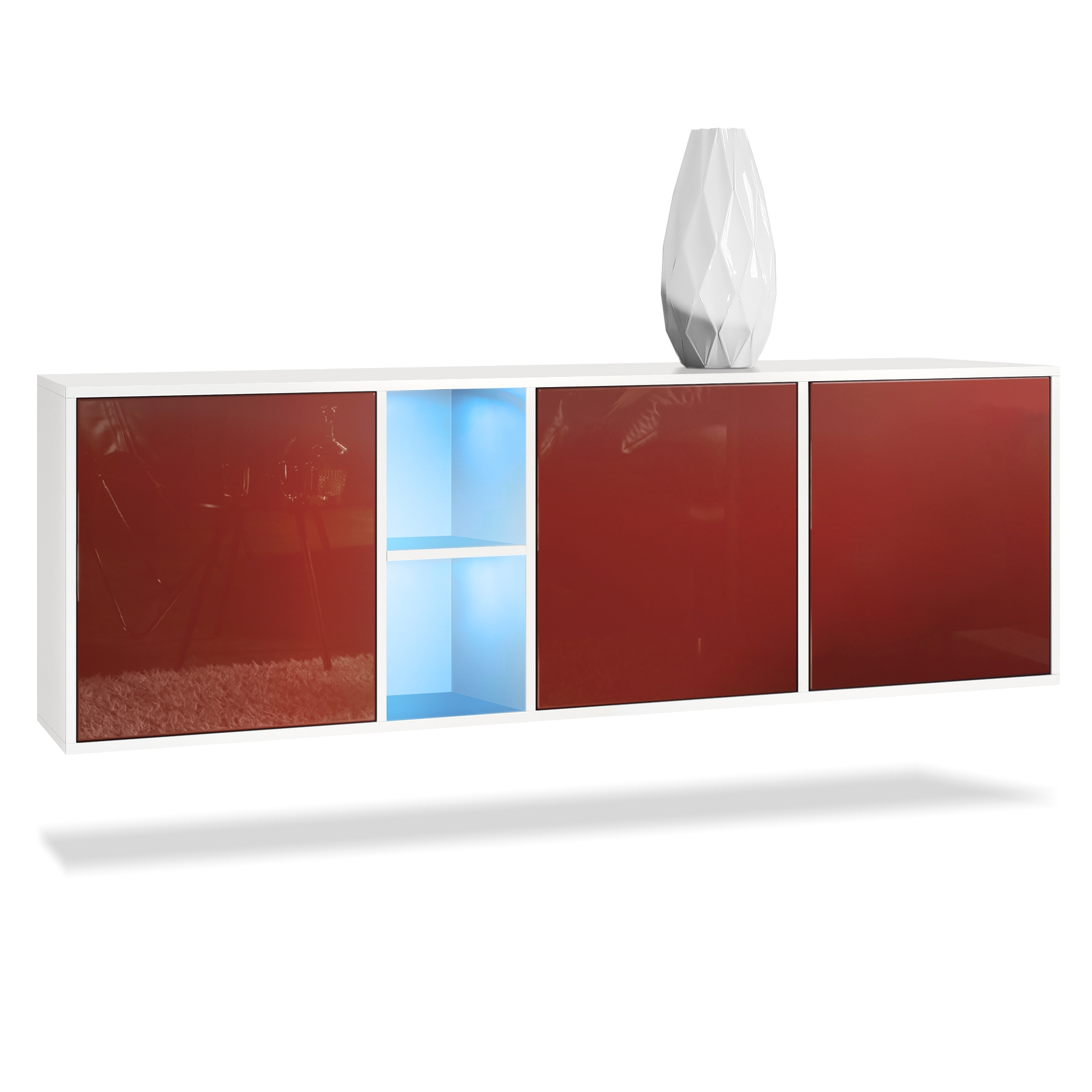 Produktinformationen "Sideboard Cuba mit 3 Türen und 2 offene Fächer Weiß matt/Bordeaux Hochglanz inkl. LED-Beleuchtung (182 x 53 x 35 cm)"