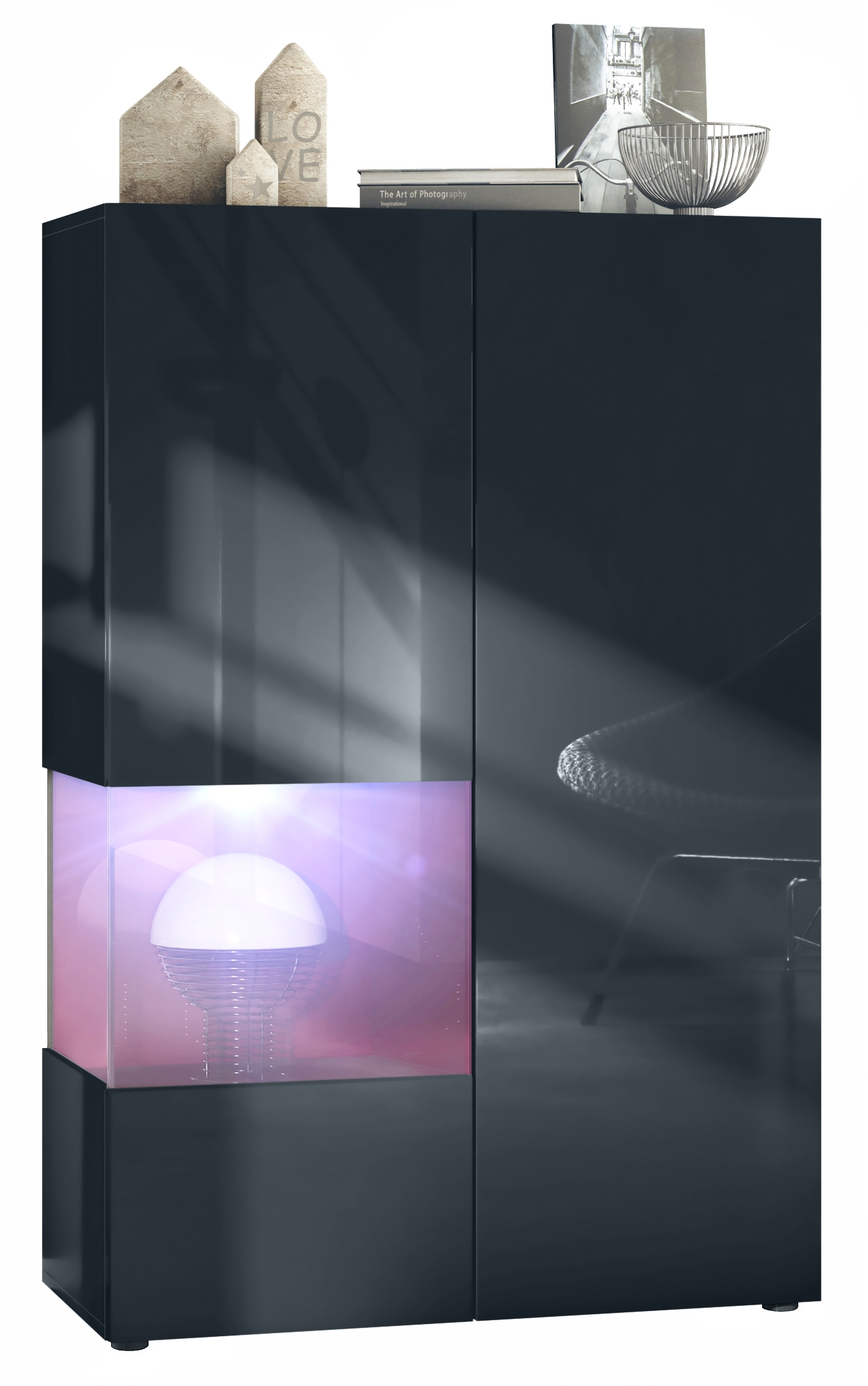 Produktinformationen "Vitrine Morena V2 mit 2 Türen und Glaseinsatz inkl. LED-Beleuchtung Schwarz matt/Schwarz Hochglanz/Bordeaux Hochglanz(91,5 x 136,5 x 37 cm)"