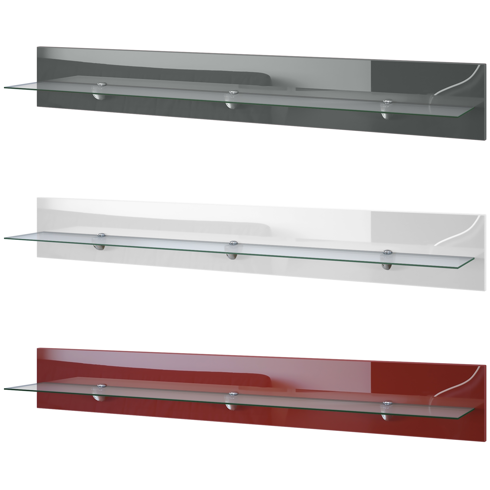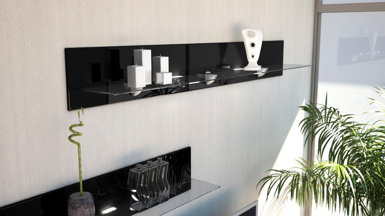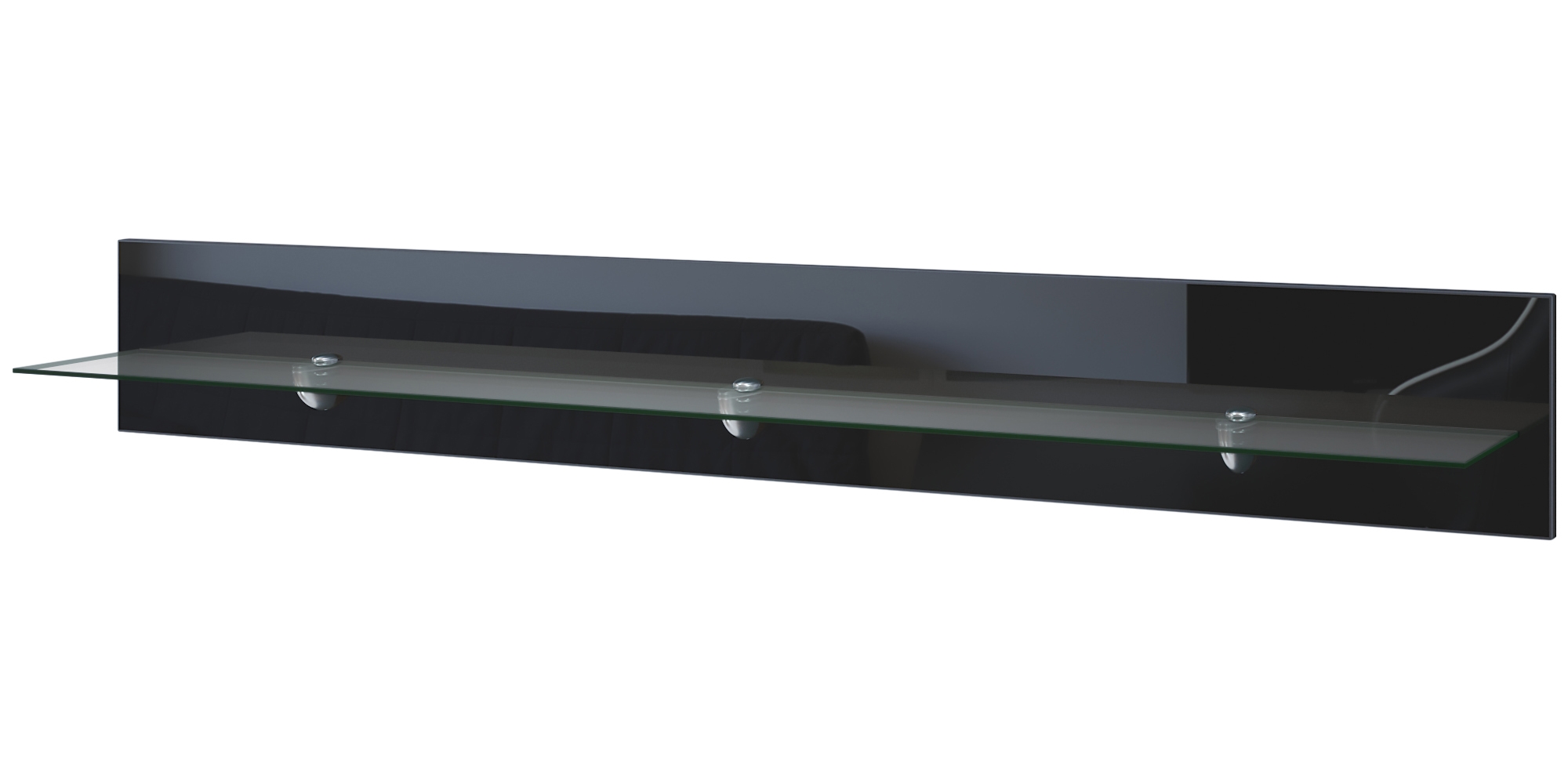 Produktinformationen "Wandregal Bari V2 mit praktischer Glasablage Schwarz Hochglanz (146 x 20 x 19 cm)"