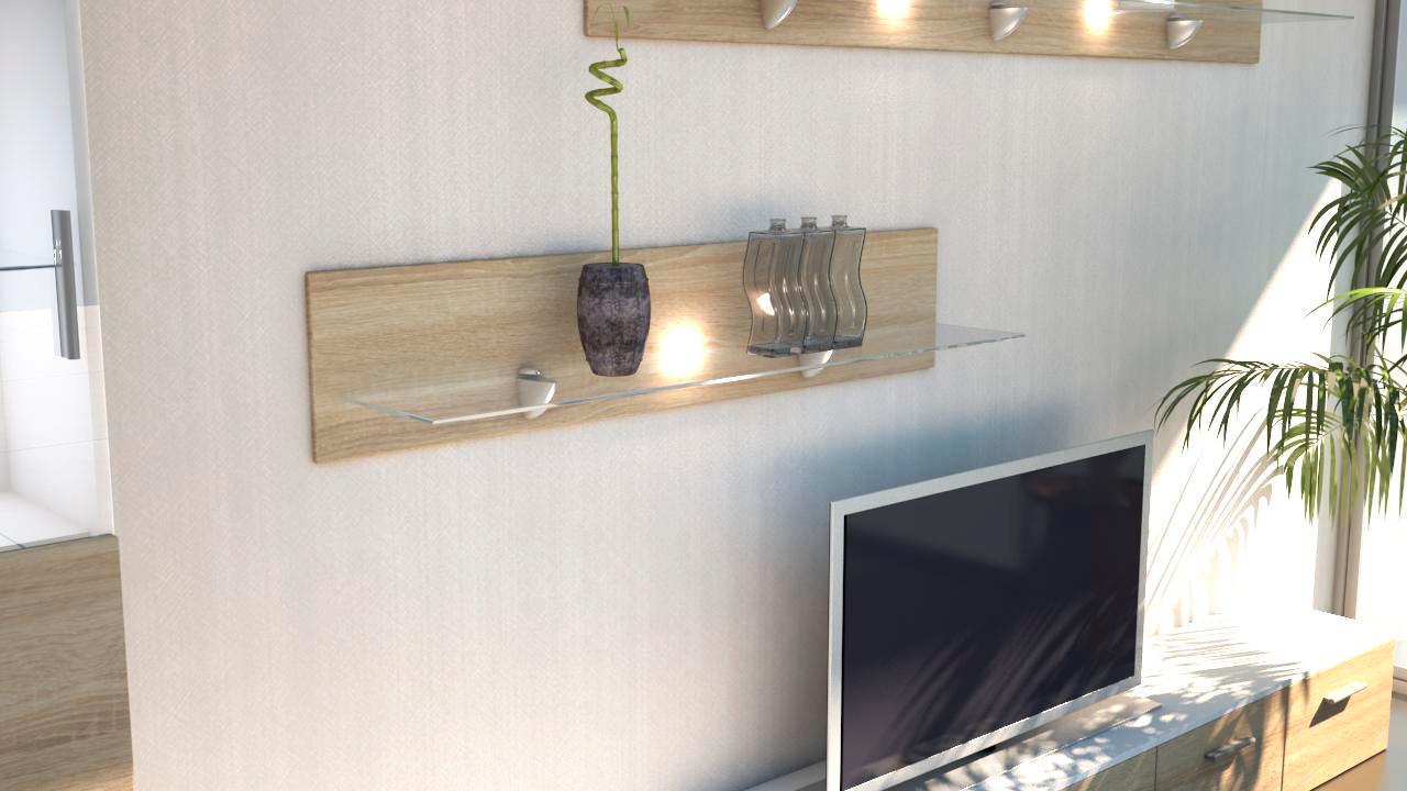 Dank seines modernen Designs und der eleganten Front in Kombination mit der Glasablage fügt sich das Wandregal harmonisch in verschiedene Einrichtungsstile ein. Es verleiht jedem Raum eine moderne und stilvolle Atmosphäre.