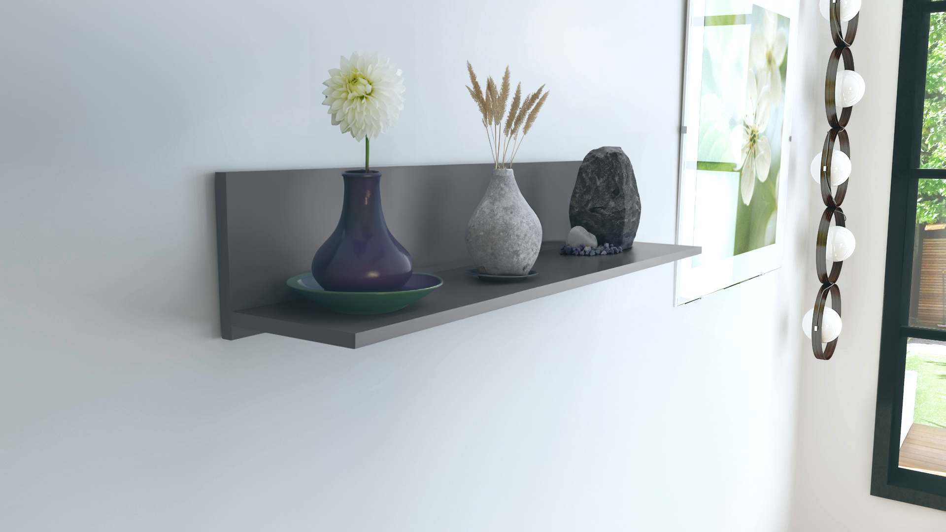 Das schmale Wandregal Skadu ist schlicht und modern und eignet sich perfekt als Ergänzung in Ihrem Badezimmer, der Küche oder dem Wohnzimmer, hergestellt in Deutschland. Das Wandboard ist nicht nur ein dekoratives Designelement, sondern erweist sich auch als praktische Ablagefläche für Accessoires und für Deko. Das Regalbrett verfügt über abgerundete Kanten. Dank einer unsichtbaren Aufhängung an der Rückseite des Winkelregals wird gänzlich auf sichtbare Verschraubungen verzichtet und so eine besonders elegante Optik gewährleistet.