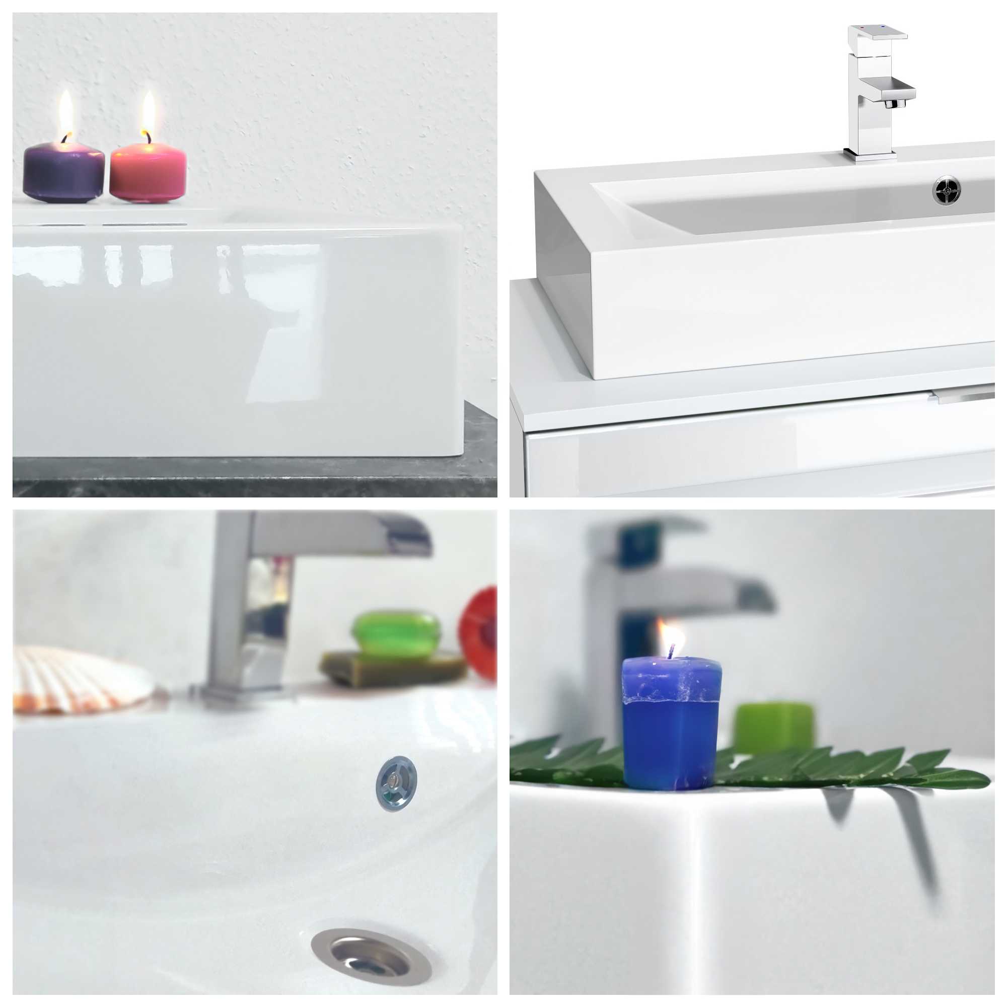 Produktinformationen "Waschbecken Aloha Eckiges Design Mineralguss (43 x 80 x 12,5 cm)"