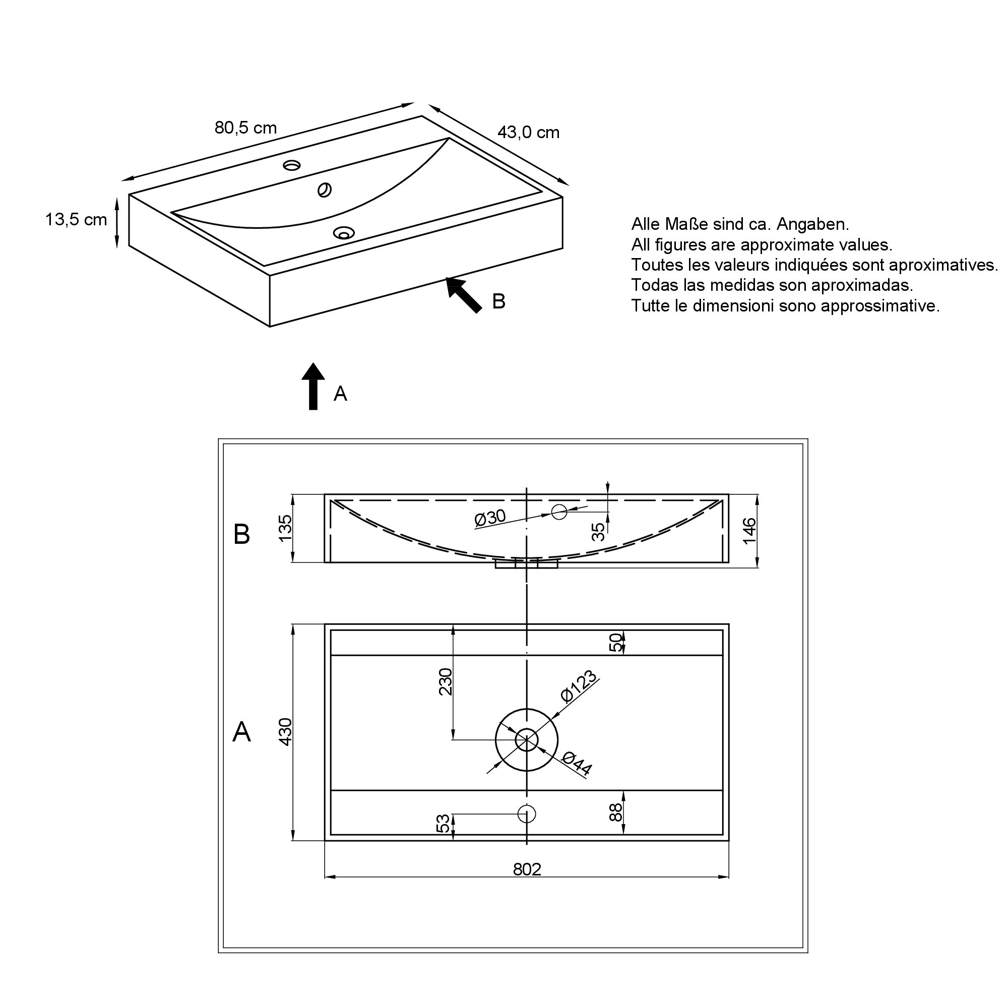 Mit den Maßen 80 x 43 x 14 cm bietet das Waschbecken Aloha ausreichend Platz für den täglichen Gebrauch und ist dennoch kompakt genug, um auch in kleineren Räumen optimal zu funktionieren. Das integrierte Überlaufloch verhindert ein Überlaufen des Wassers und sorgt für zusätzliche Sicherheit. Die glatte, pflegeleichte Oberfläche erleichtert die Reinigung und hält das Waschbecken länger sauber. Dank der wasserabweisenden Beschichtung wird das Waschbecken vor Wasserflecken und Kalkablagerungen geschützt, sodass es immer wie neu aussieht.