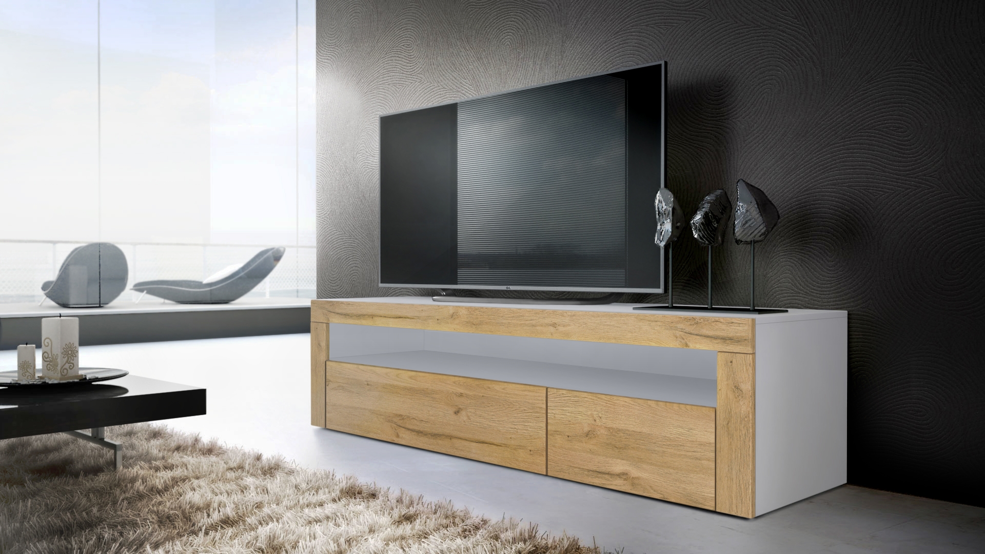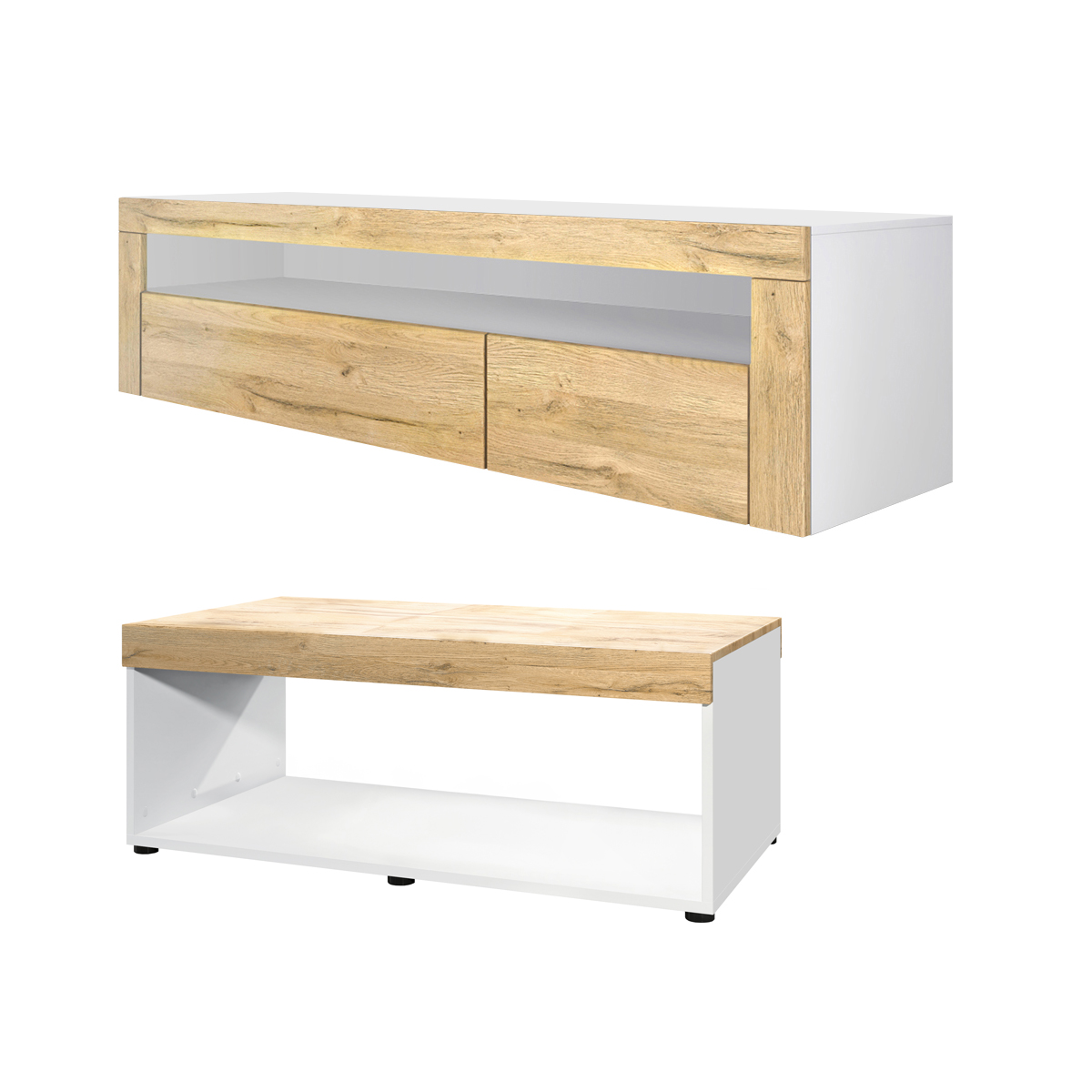 Produktinformationen "Wohnzimmer-Set Berlin bestehend aus 1 TV Board und 1 Couchtisch Weiß matt/Eiche Natur"